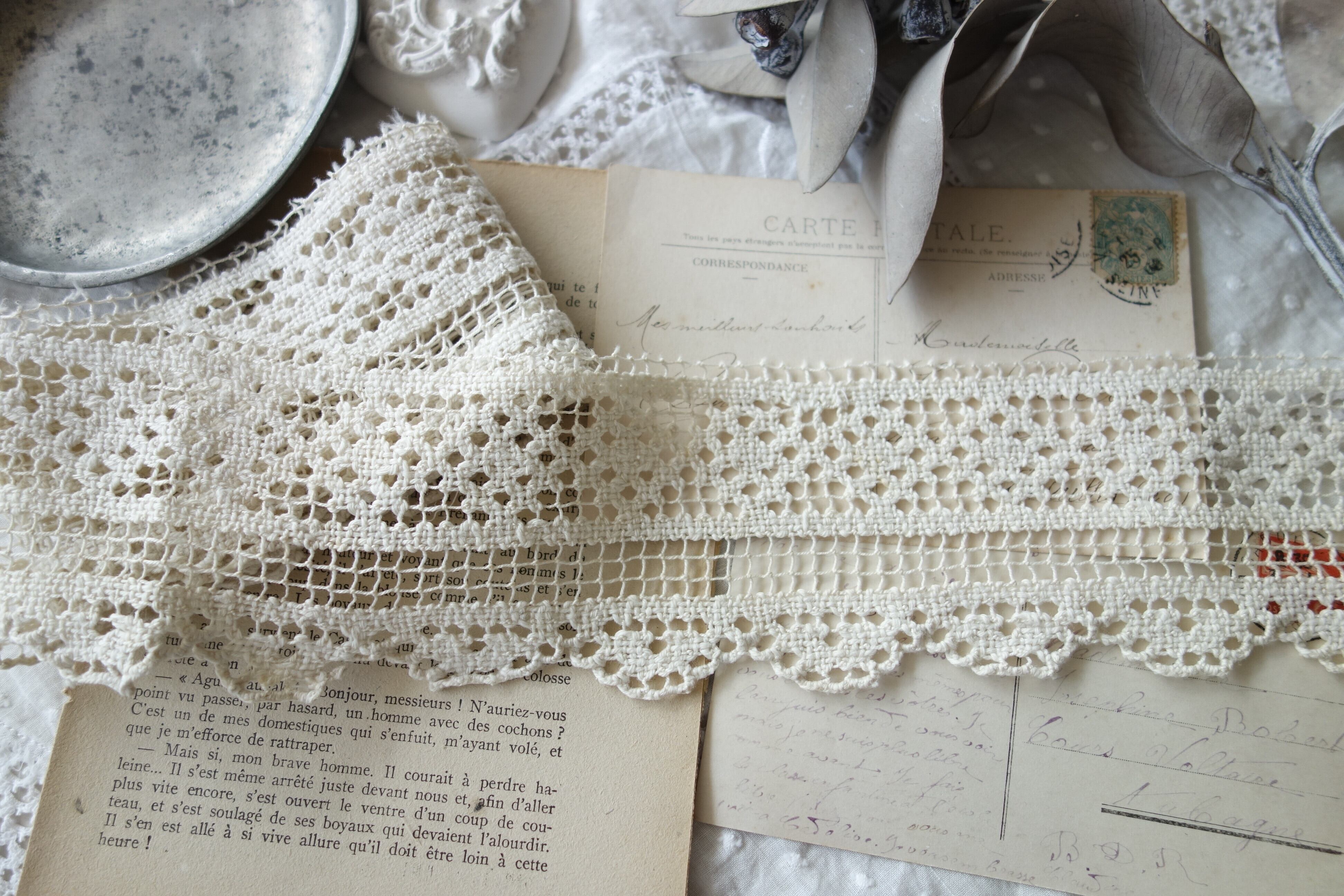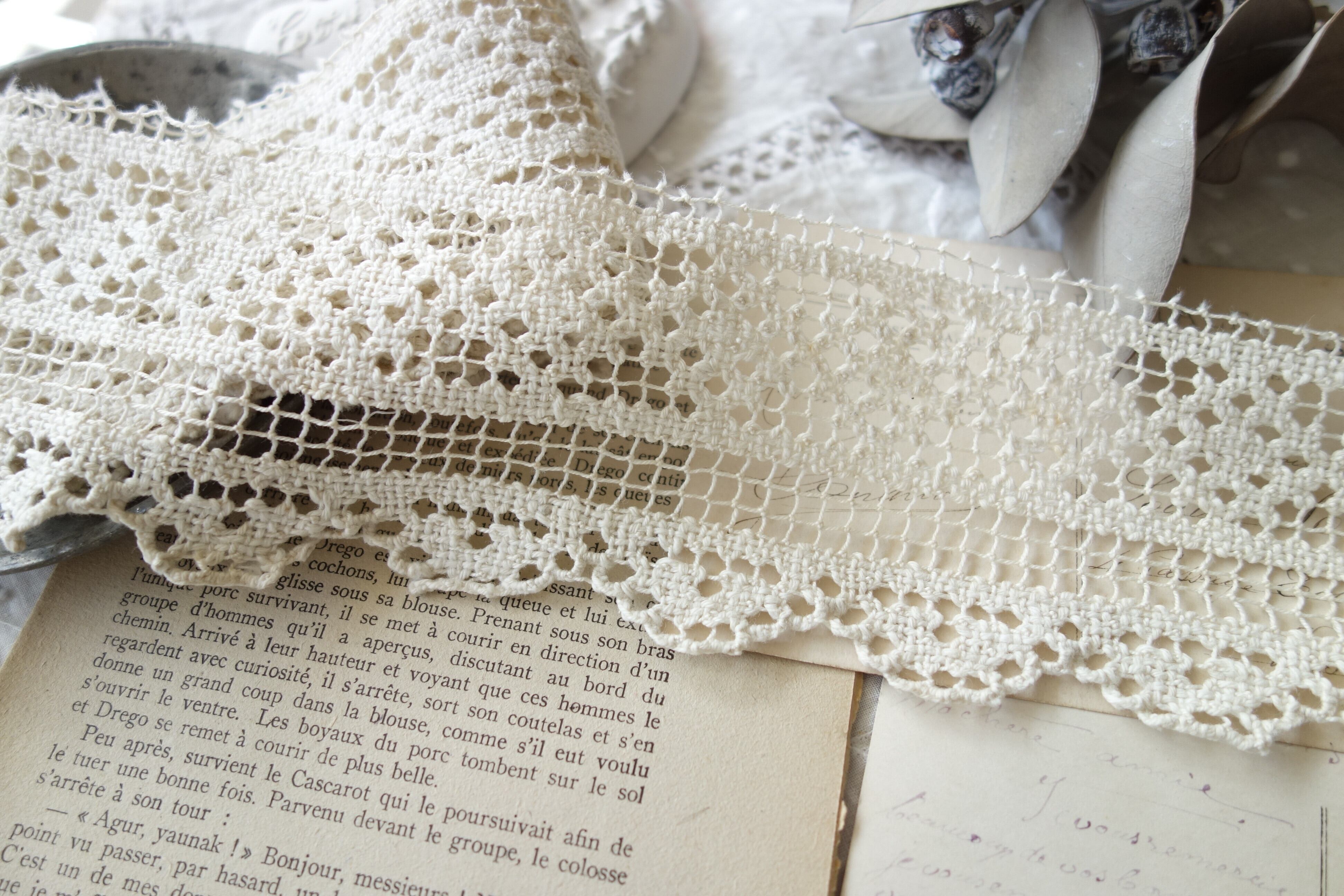 フランスの幅広アンティークレース