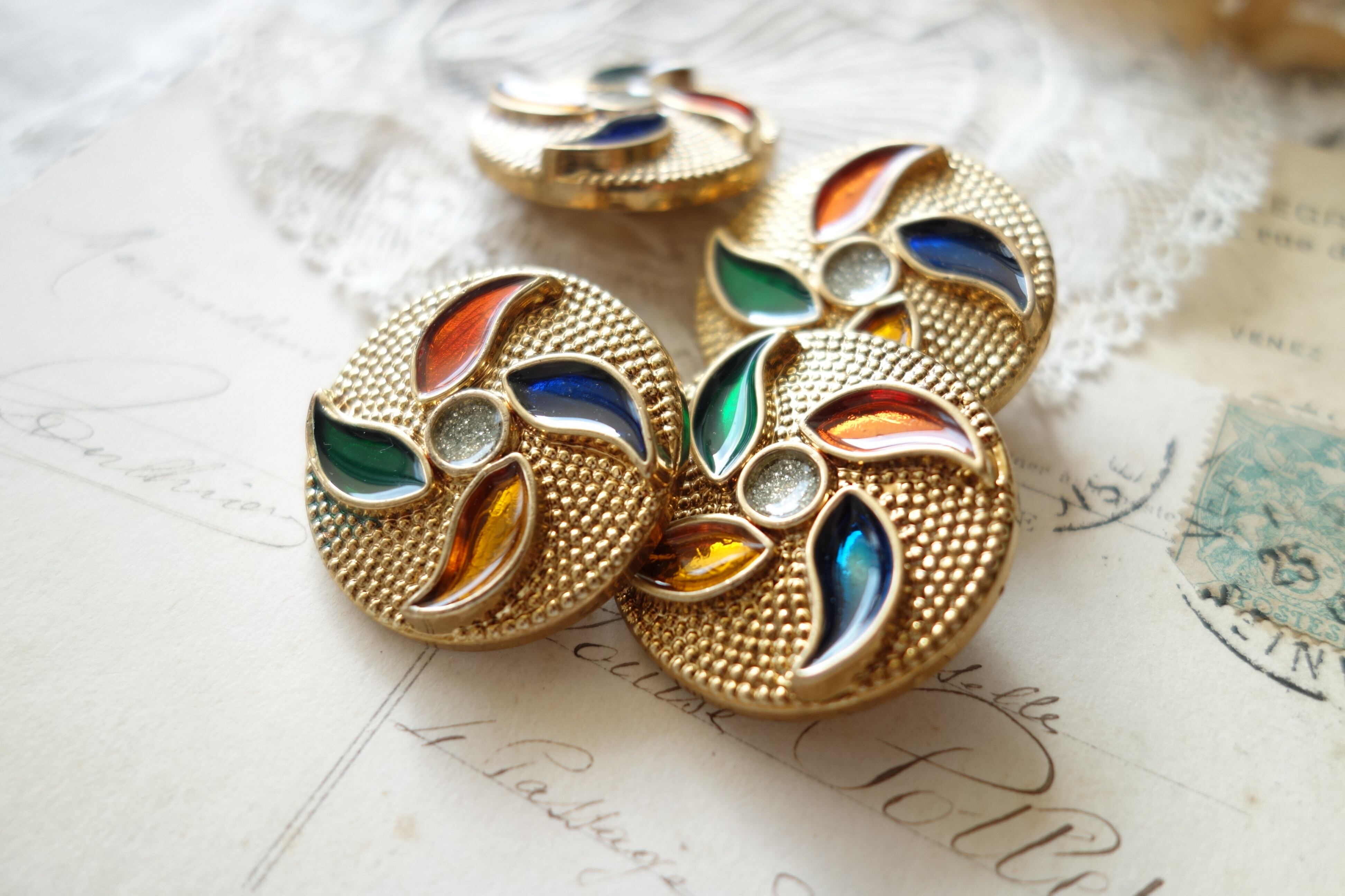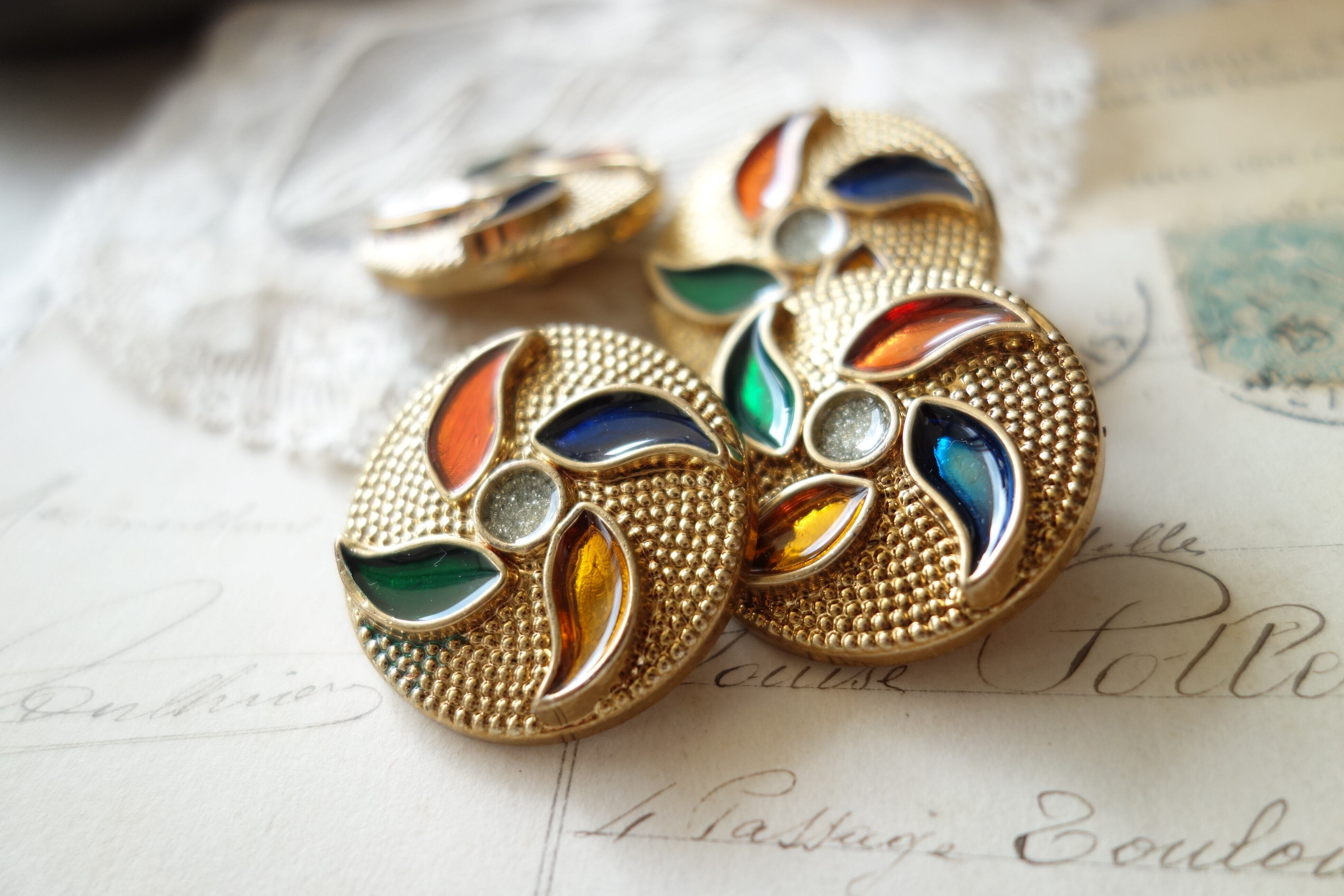 France製 34㎜ アンティーク5色ボタン A1001ゴールド