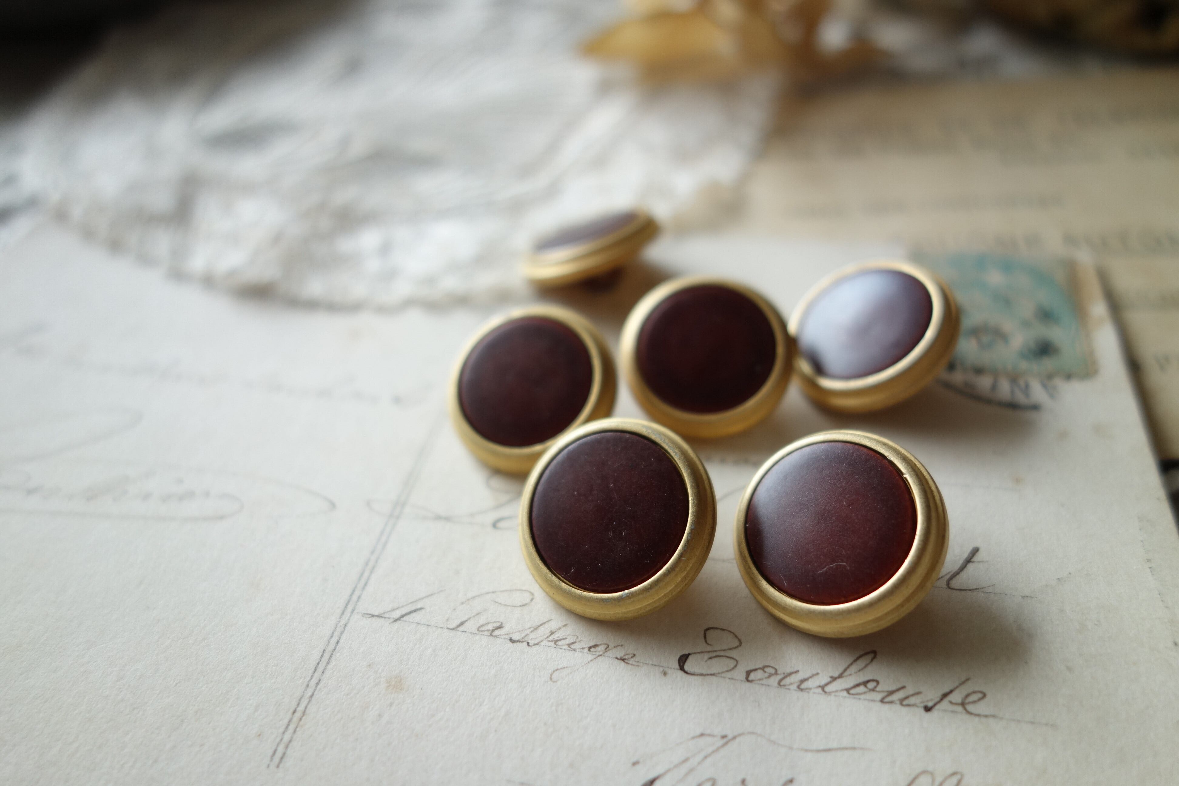 18㎜ 2個 アンティークボタン A1002 ボルドーゴールド