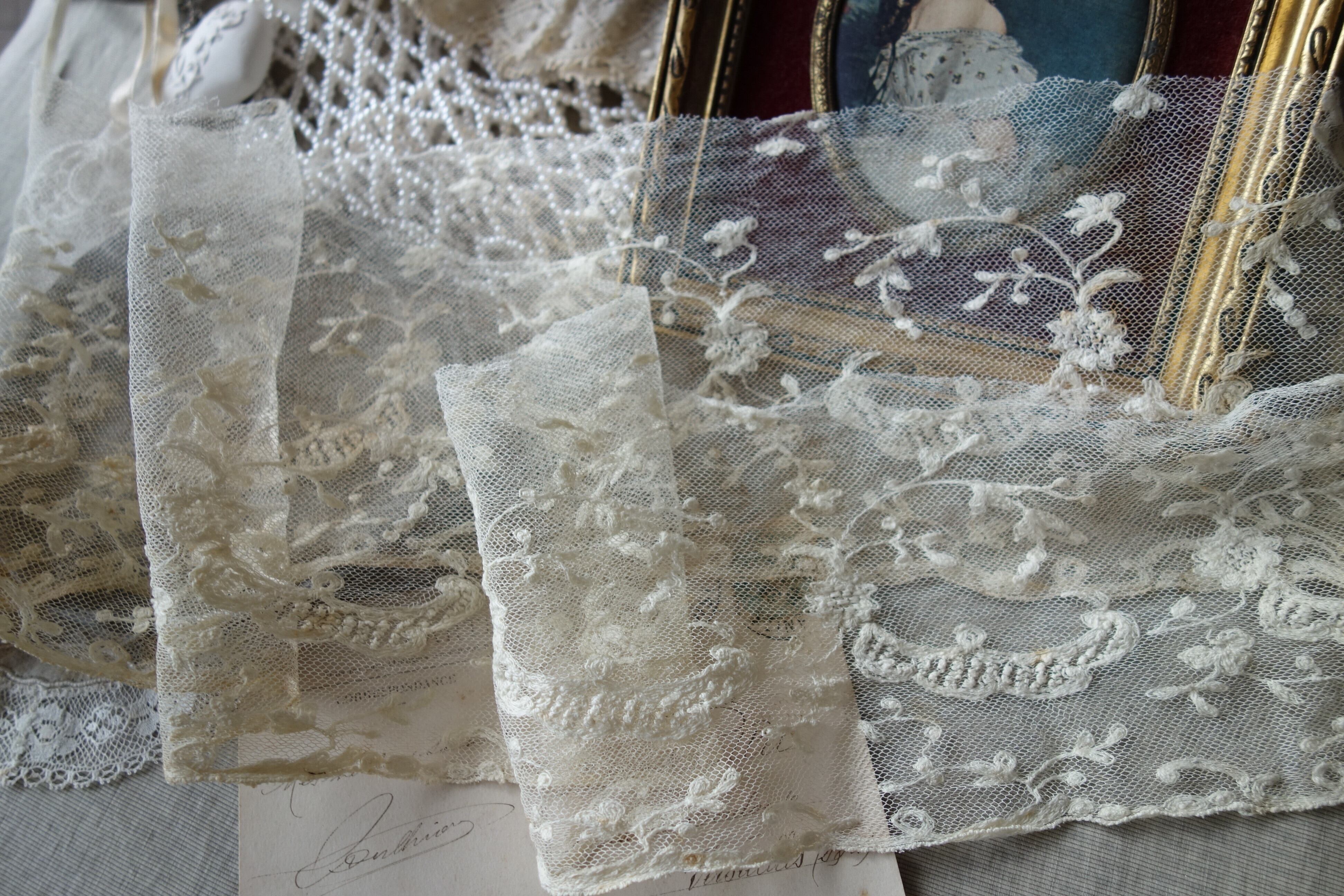 France製 95㎝ アンティーク刺繍レース C517 エクリュ