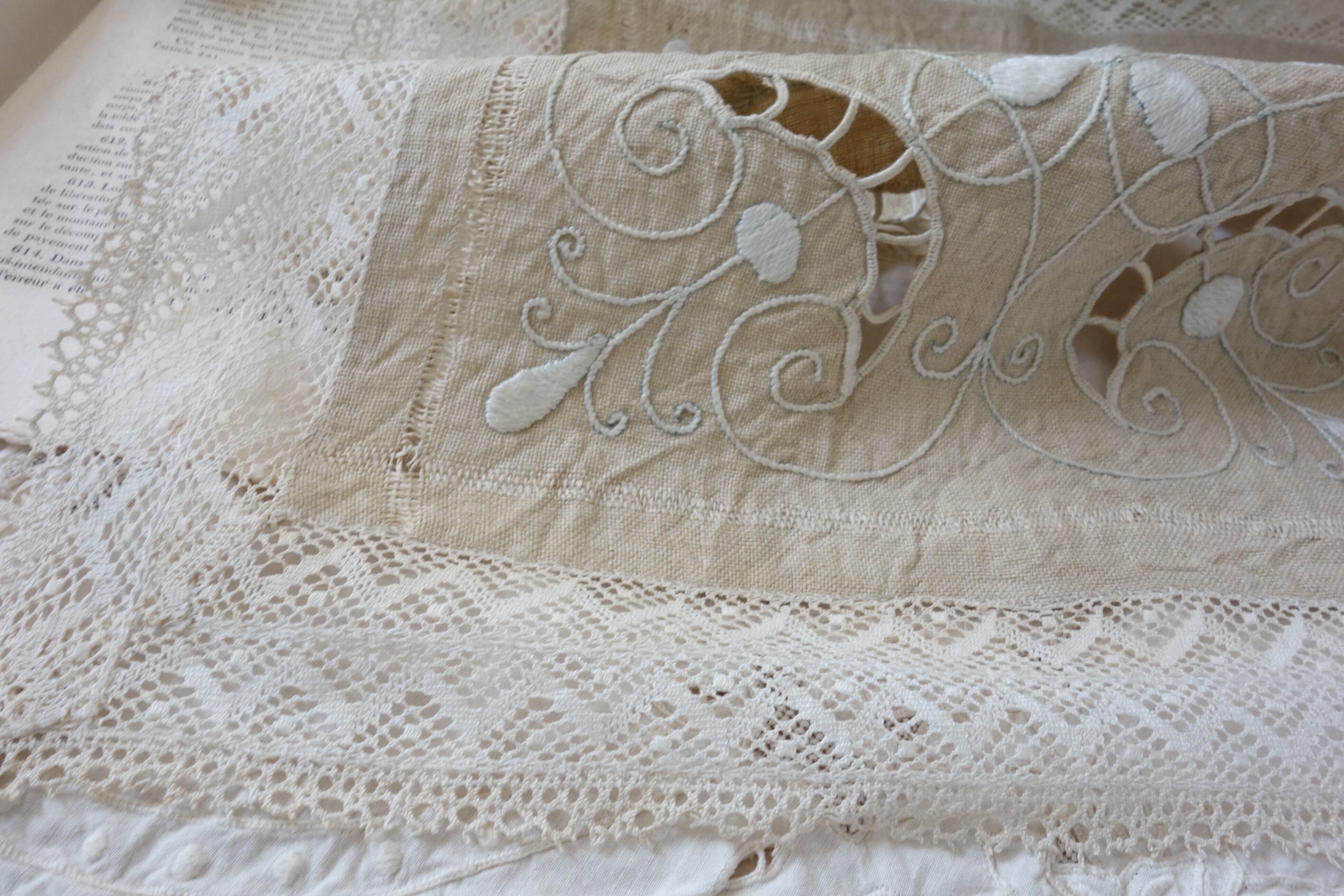 France製 41cm アンティークレース刺繍クロス B378 生成り