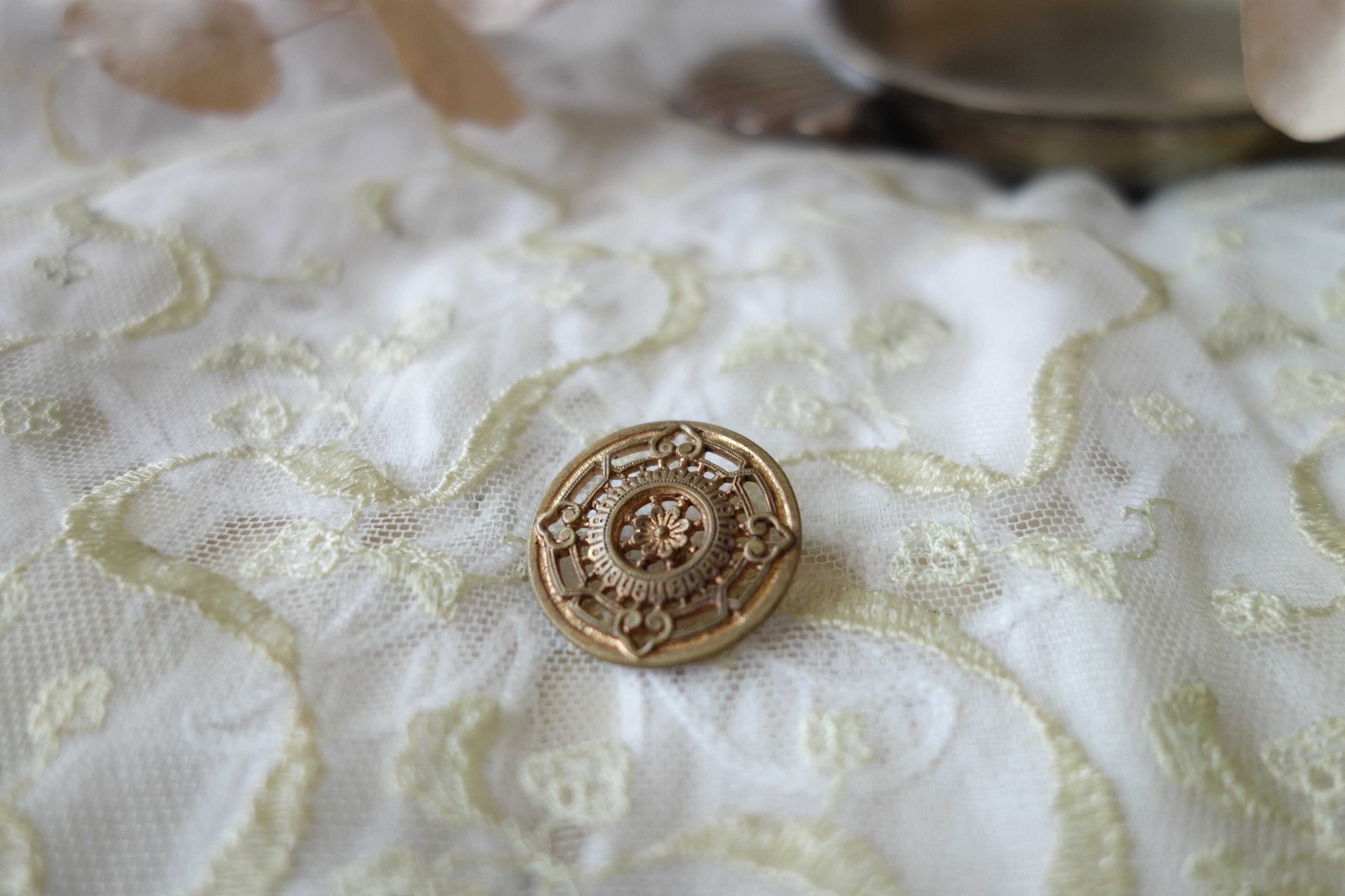 透かしのある美しいデザインで雰囲気の素敵なボタンです。