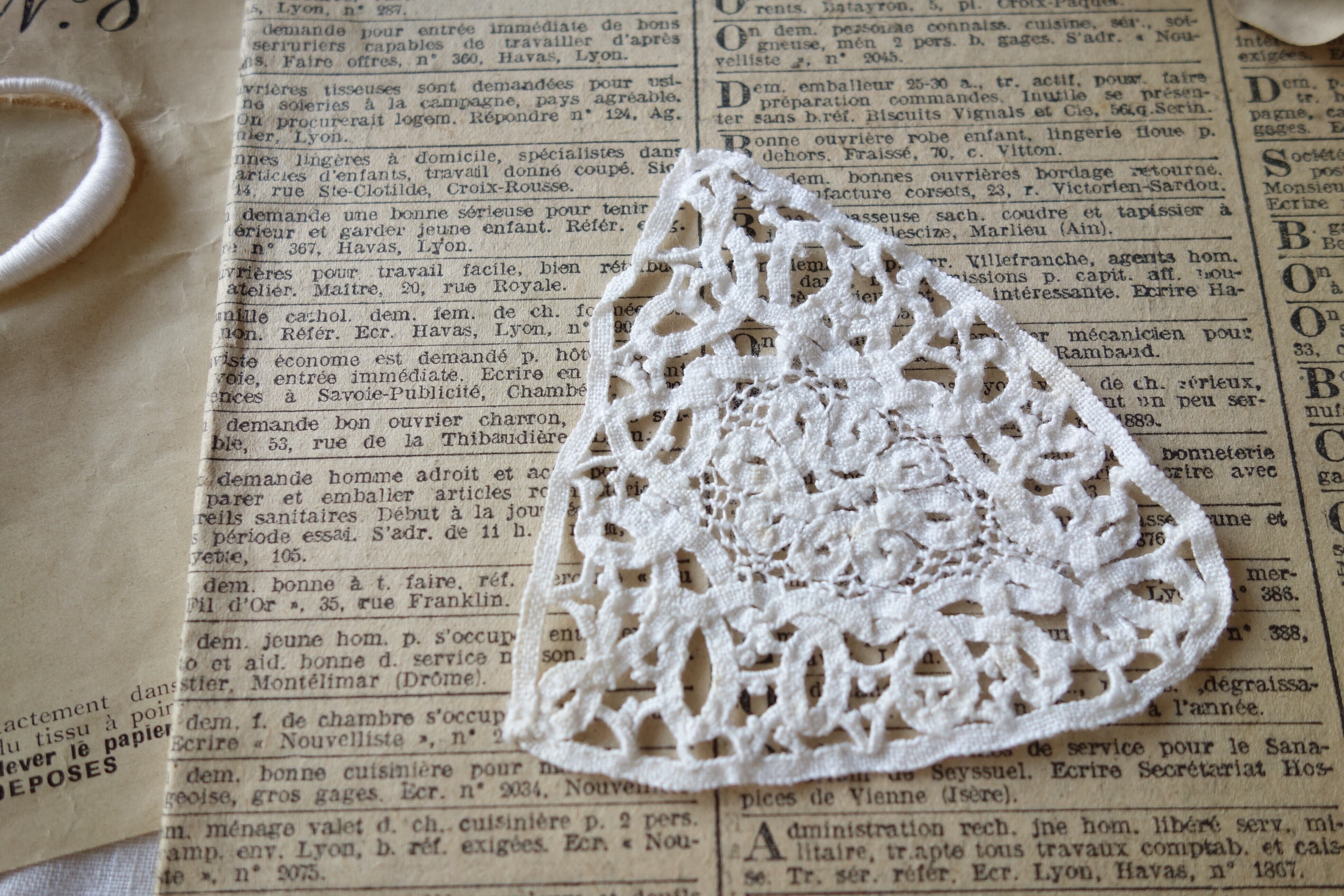 France製 アンティークモチーフレース B390 ホワイト