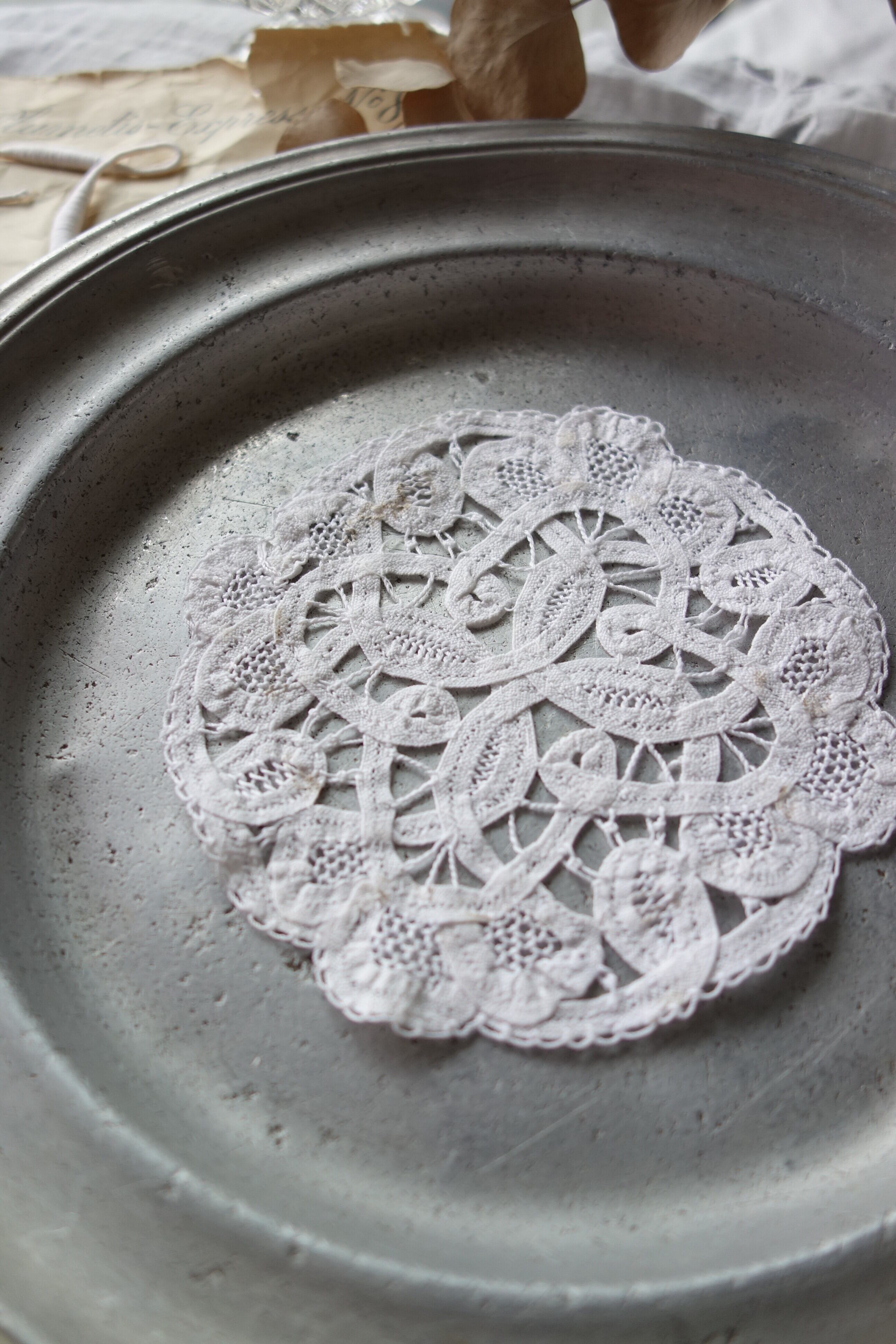 France製 10.5㎝ アンティークバテンレースドイリー B396 ホワイト