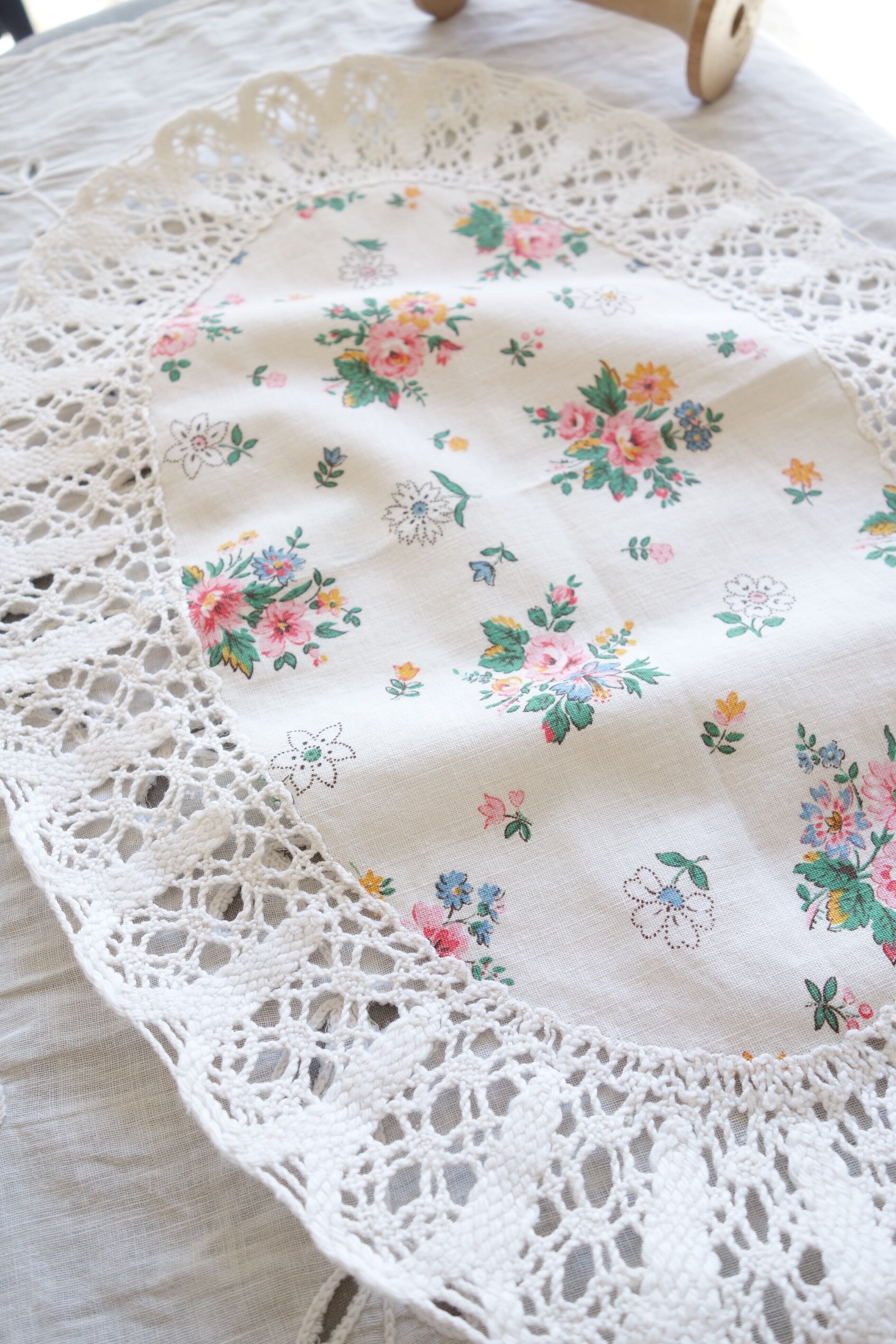 France製 花柄オーバル ヴィンテージレースドイリー B404