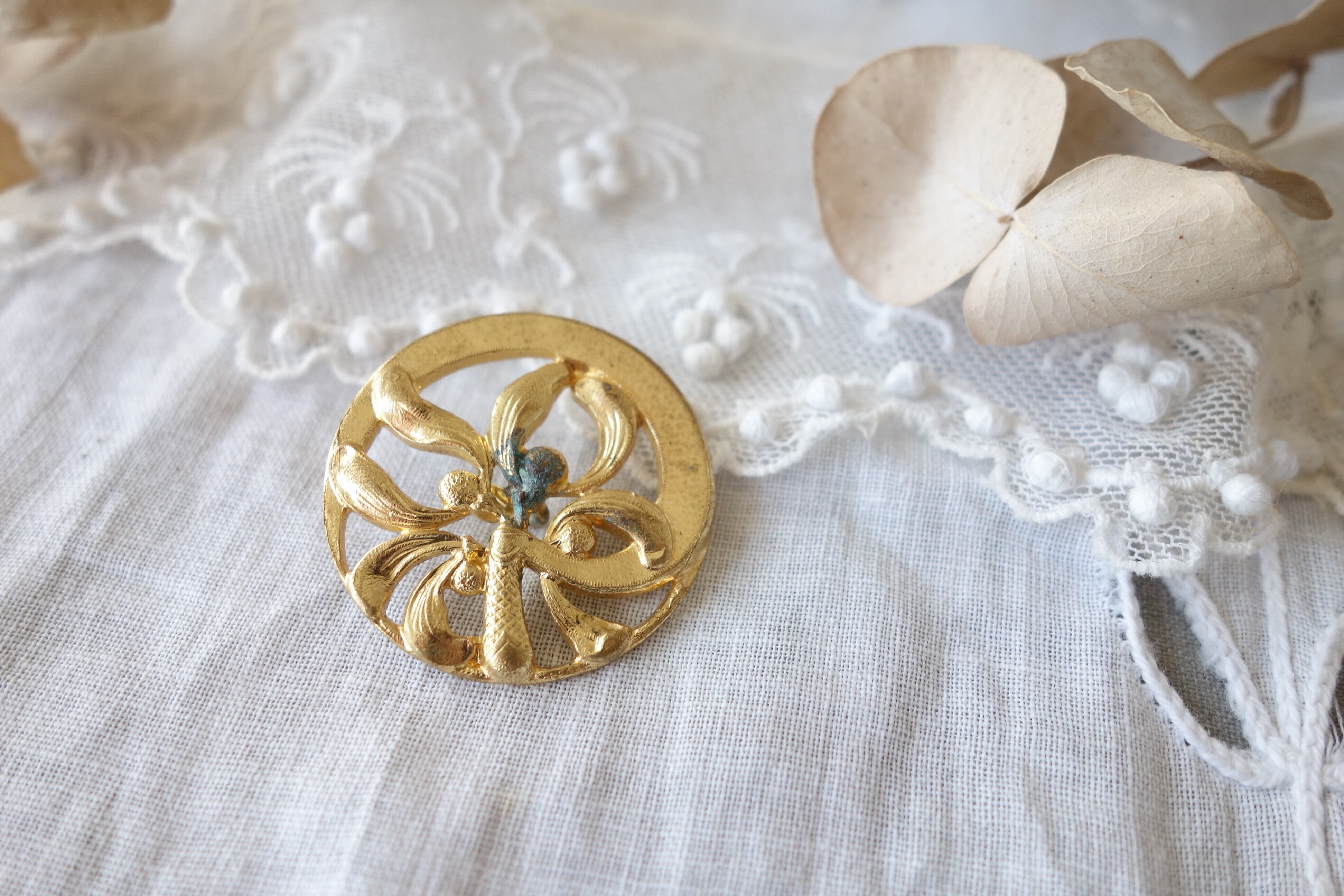 France製 31㎜ アンティークメタルボタン A1034 ゴールド