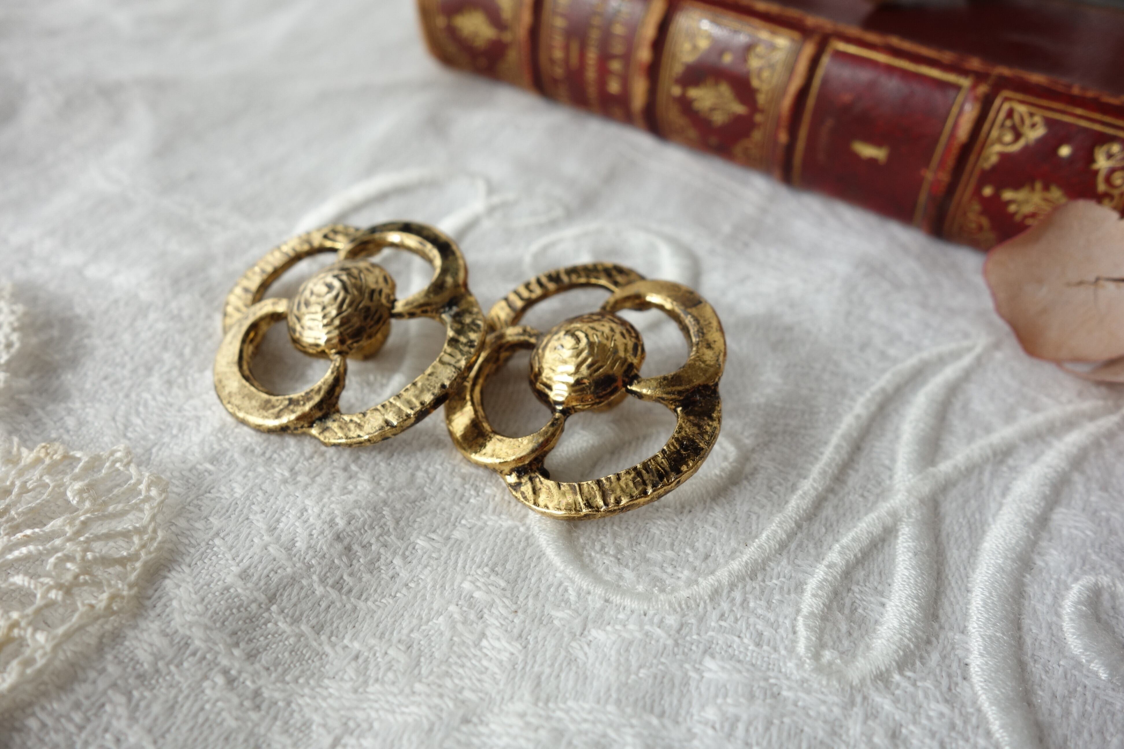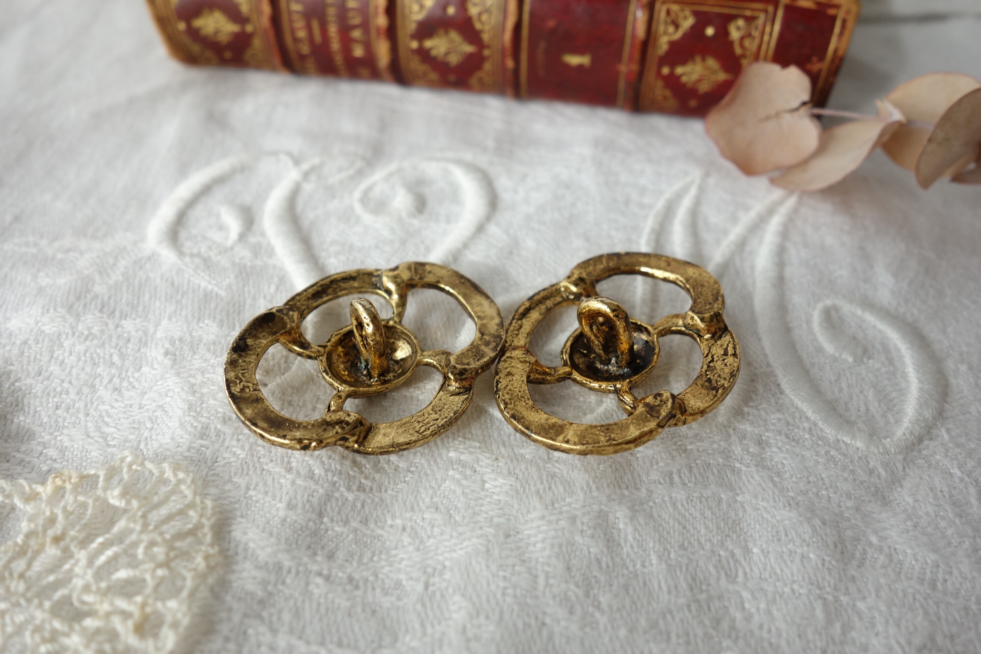 France製 32㎜ ヴィンテージメタルボタン A1061 ゴールド