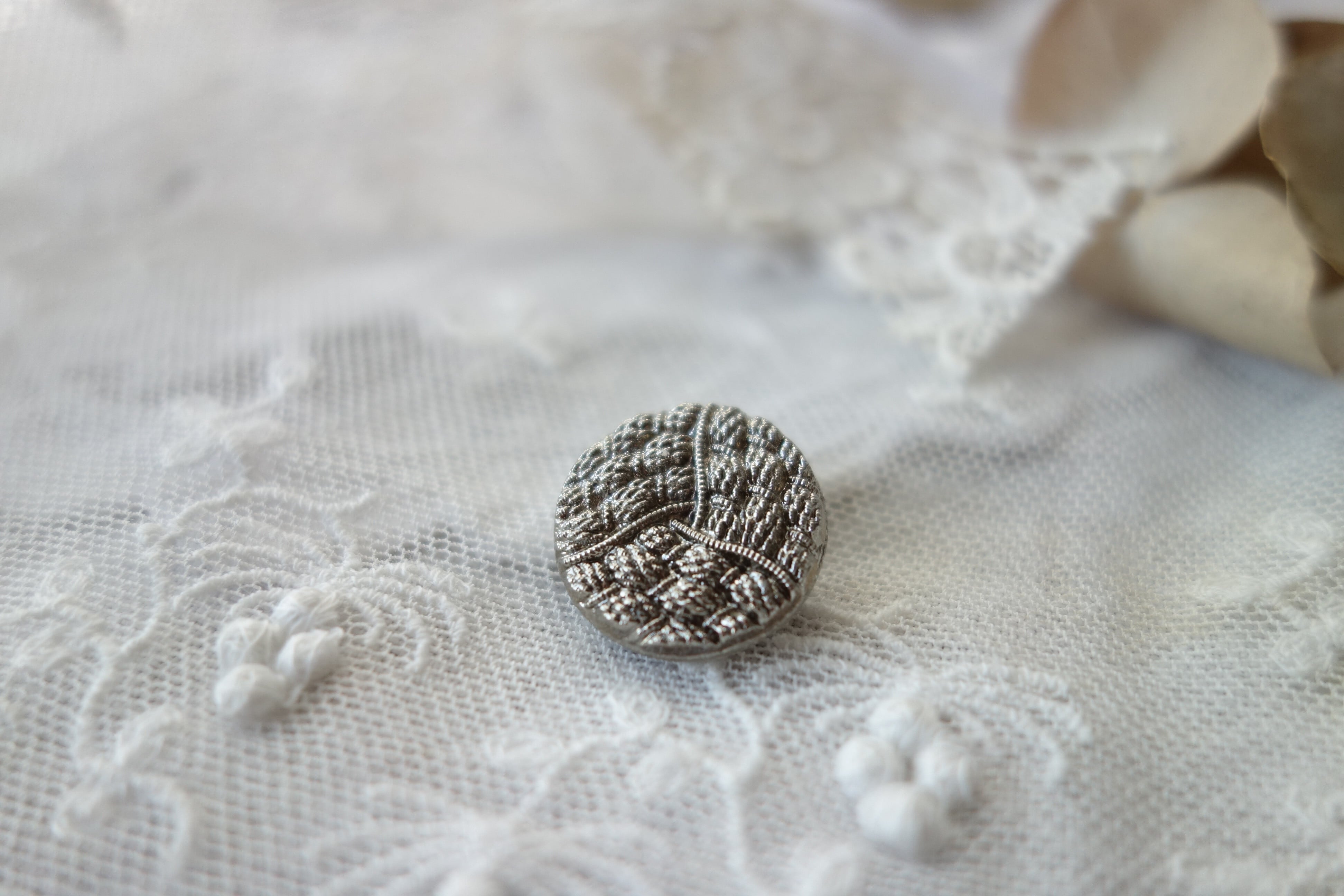 France製 18㎜ アンティークボタン ガラス製 A1071 シルバーグレイ