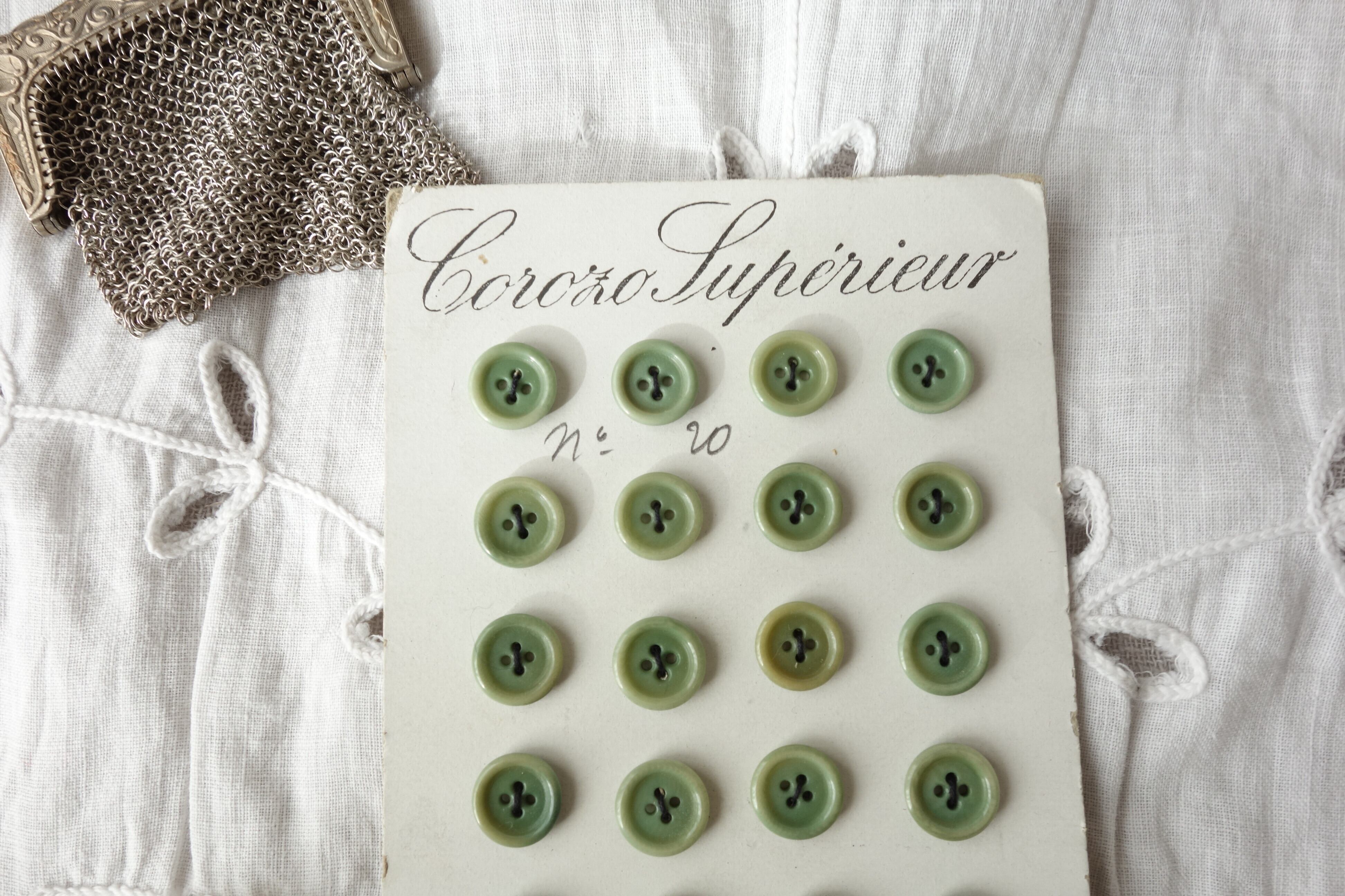 France製 24個 アンティークボタンシート オリーブ A153