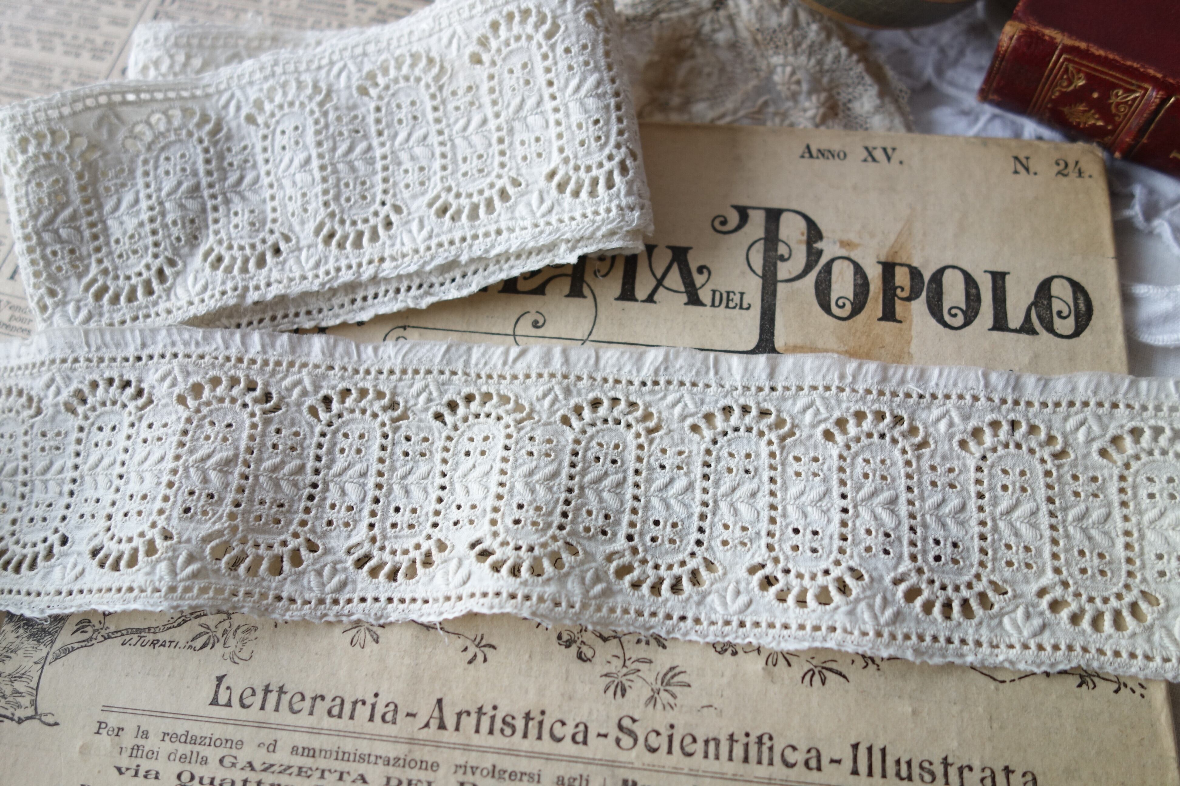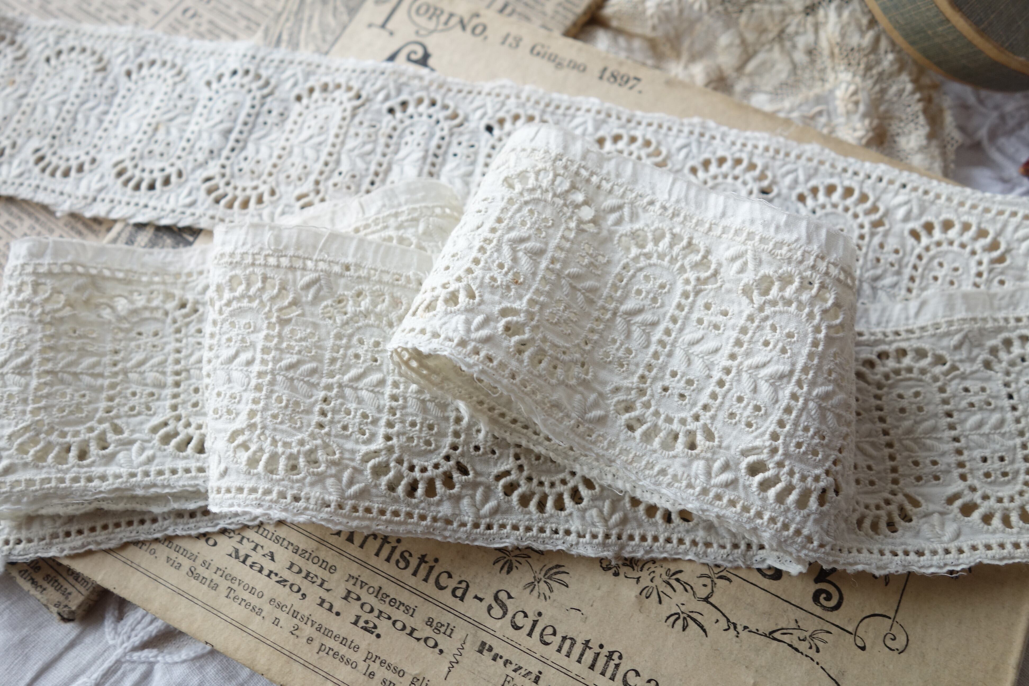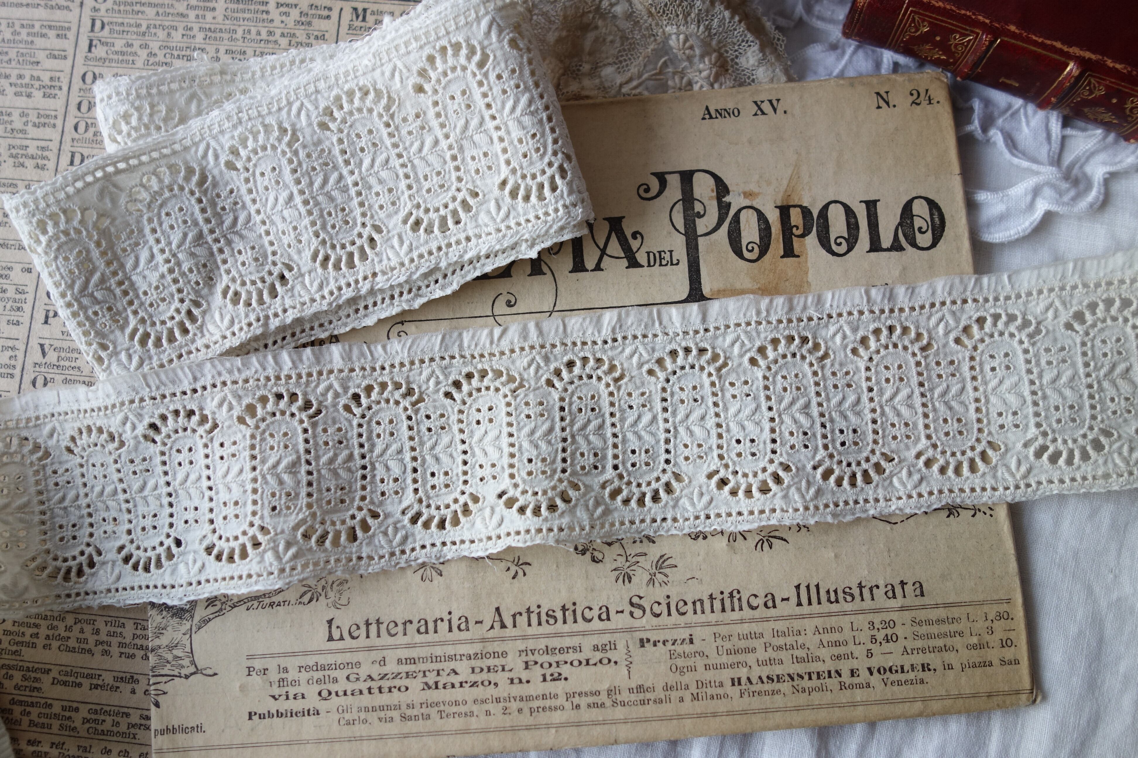France製 45㎝ アンティークカットワーク刺繍レース C607 エクリュ