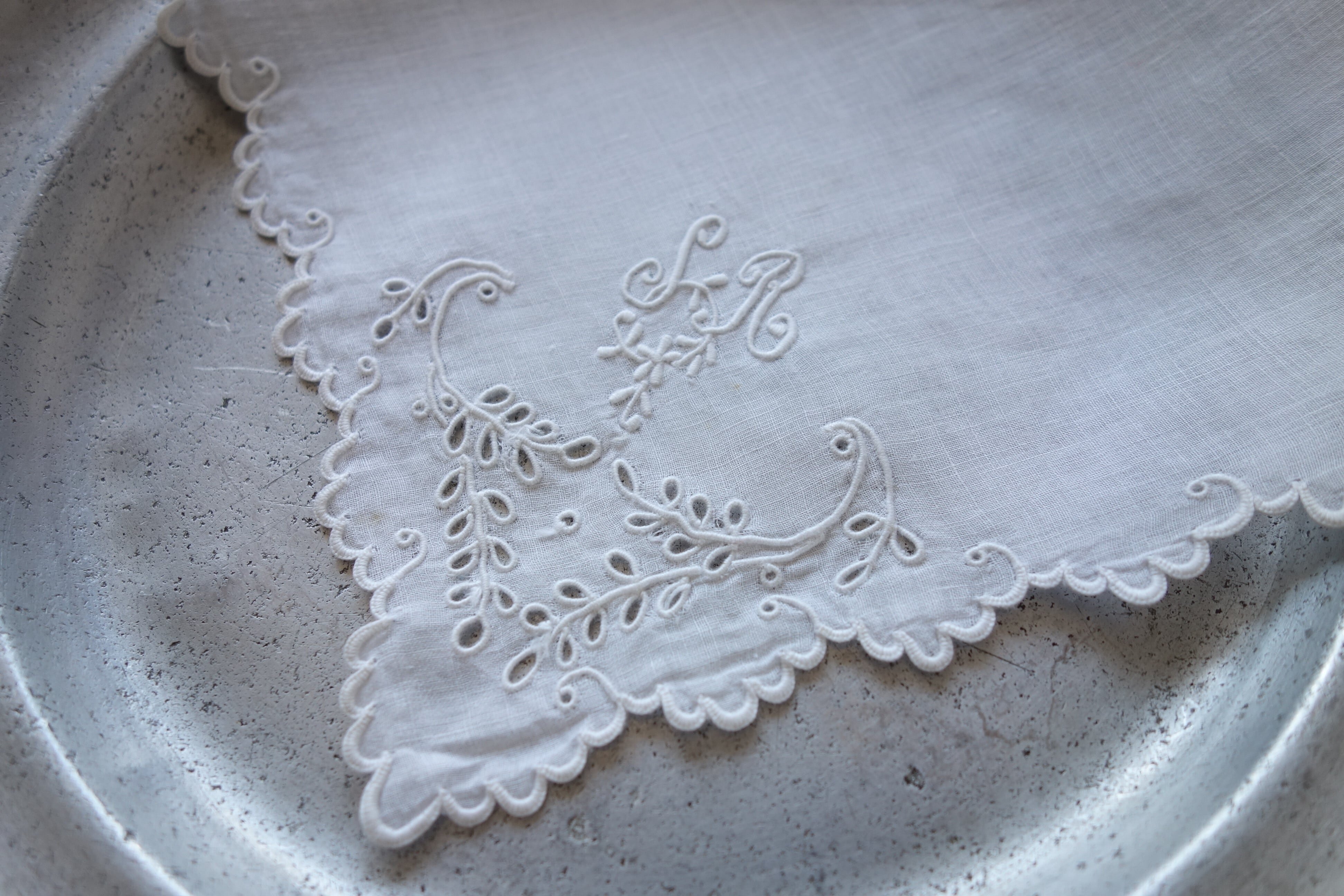 周りのスカラップ刺繍も繊細でうっとりします。