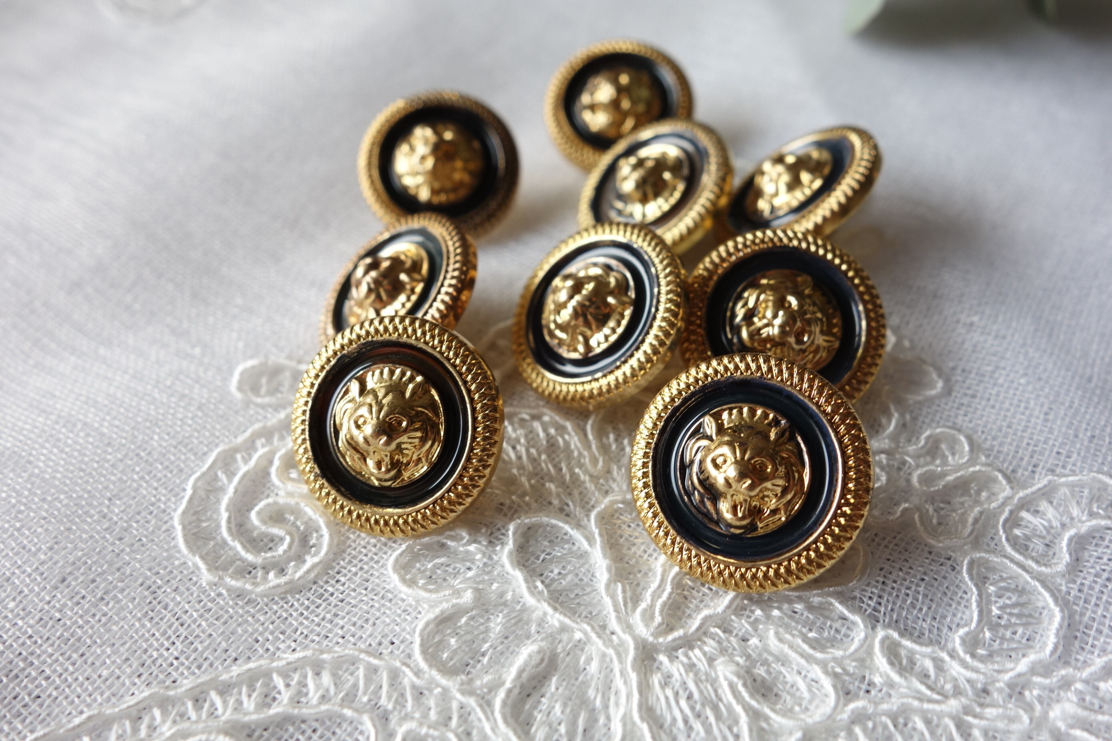 France製 17㎜ ヴィンテージ ライオンボタン A1150 ゴールド、ブラック