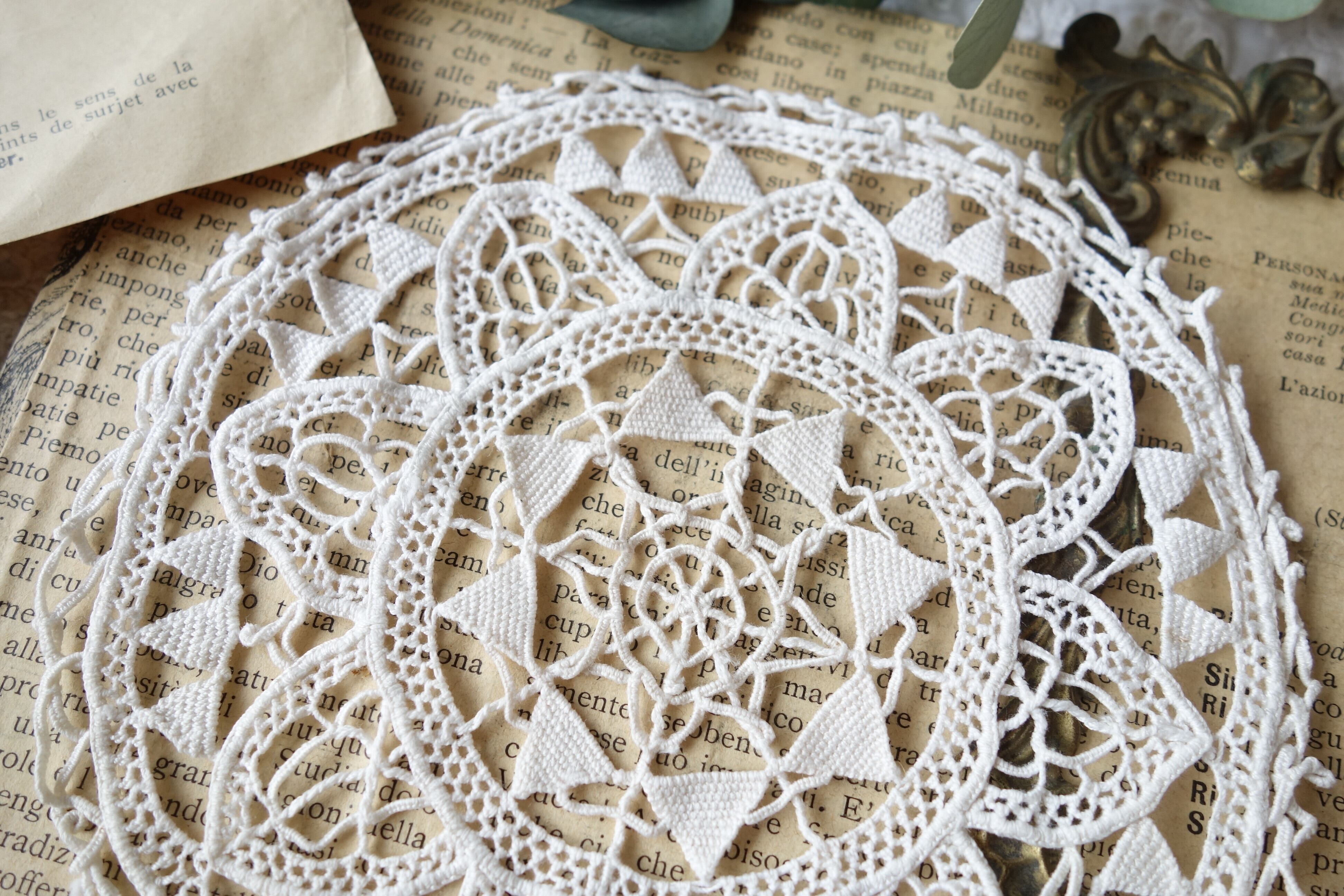 France製 13㎝ アンティークレースドイリー B487 オフホワイト