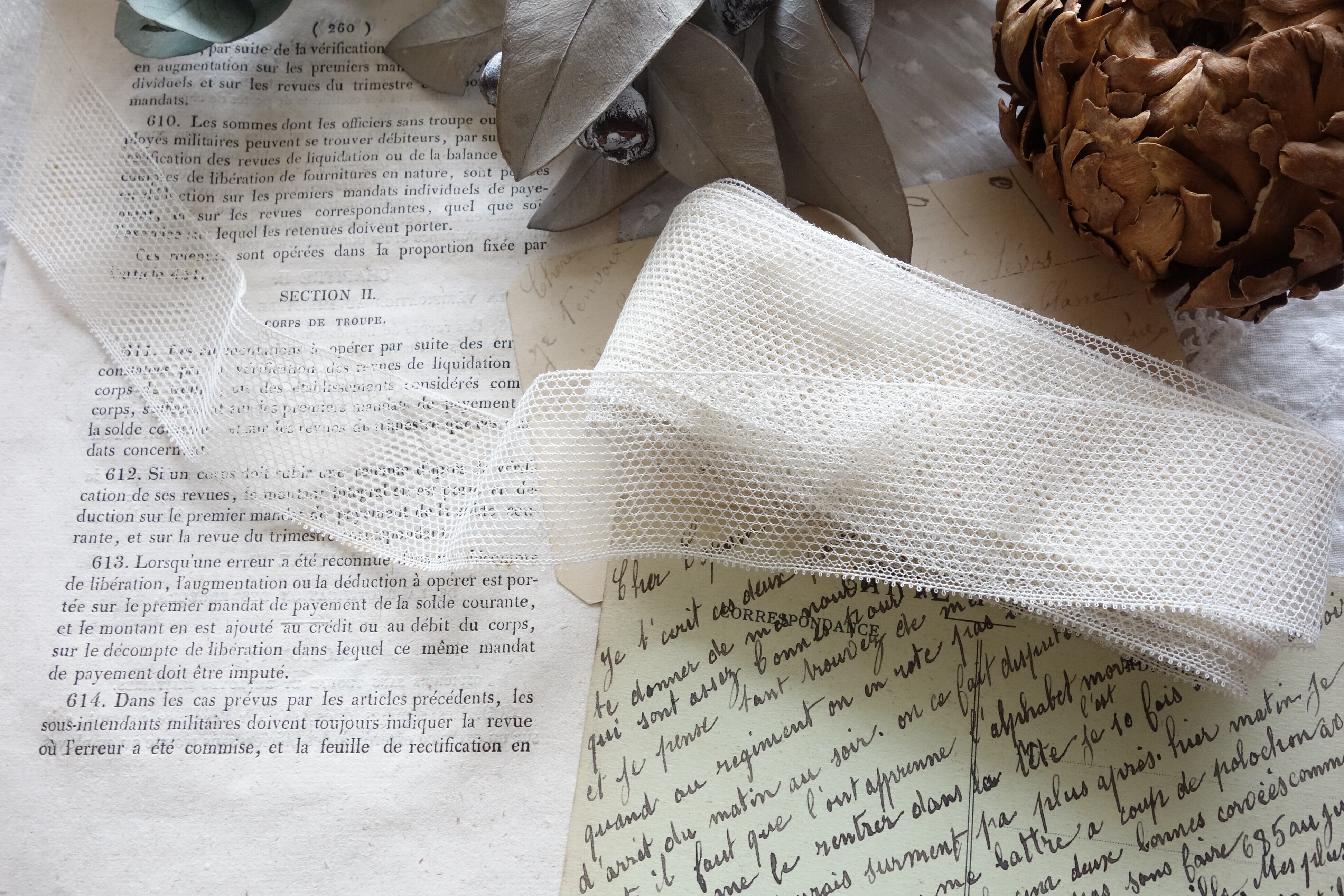 France製 50㎝ アンティークレース C642 エクリュ