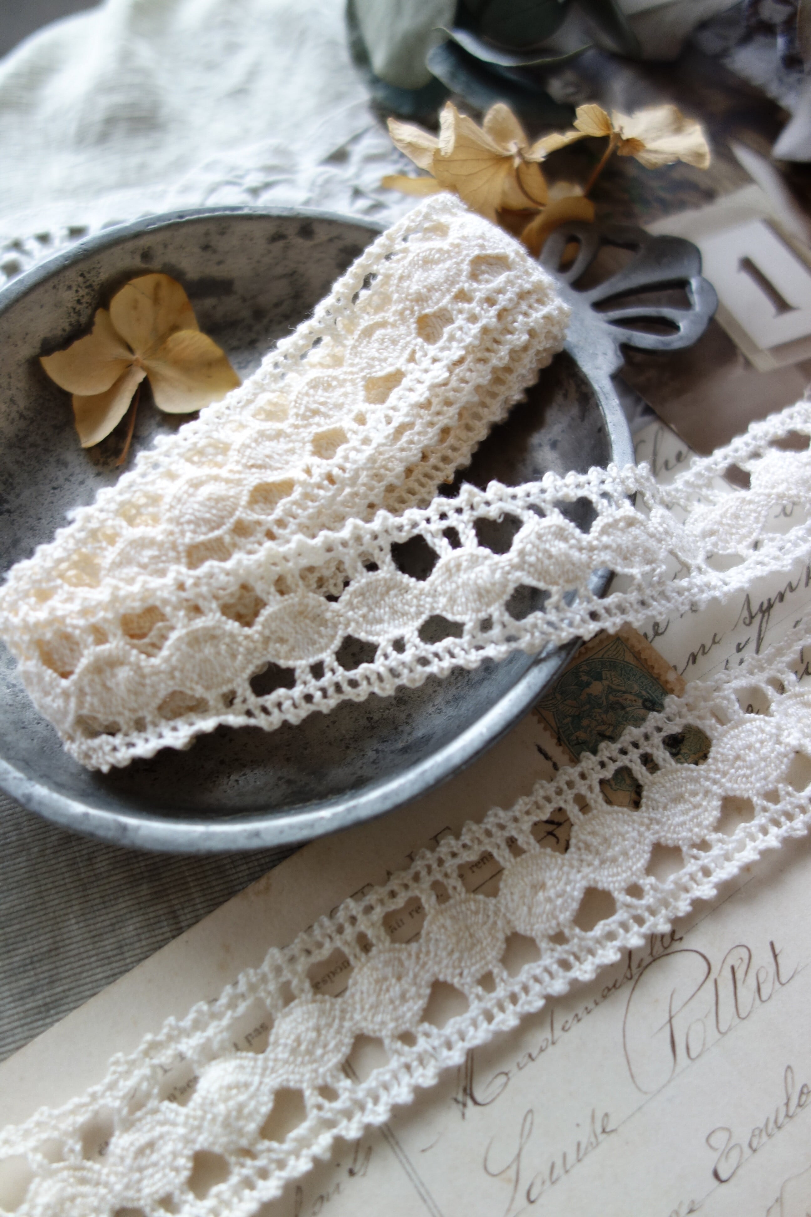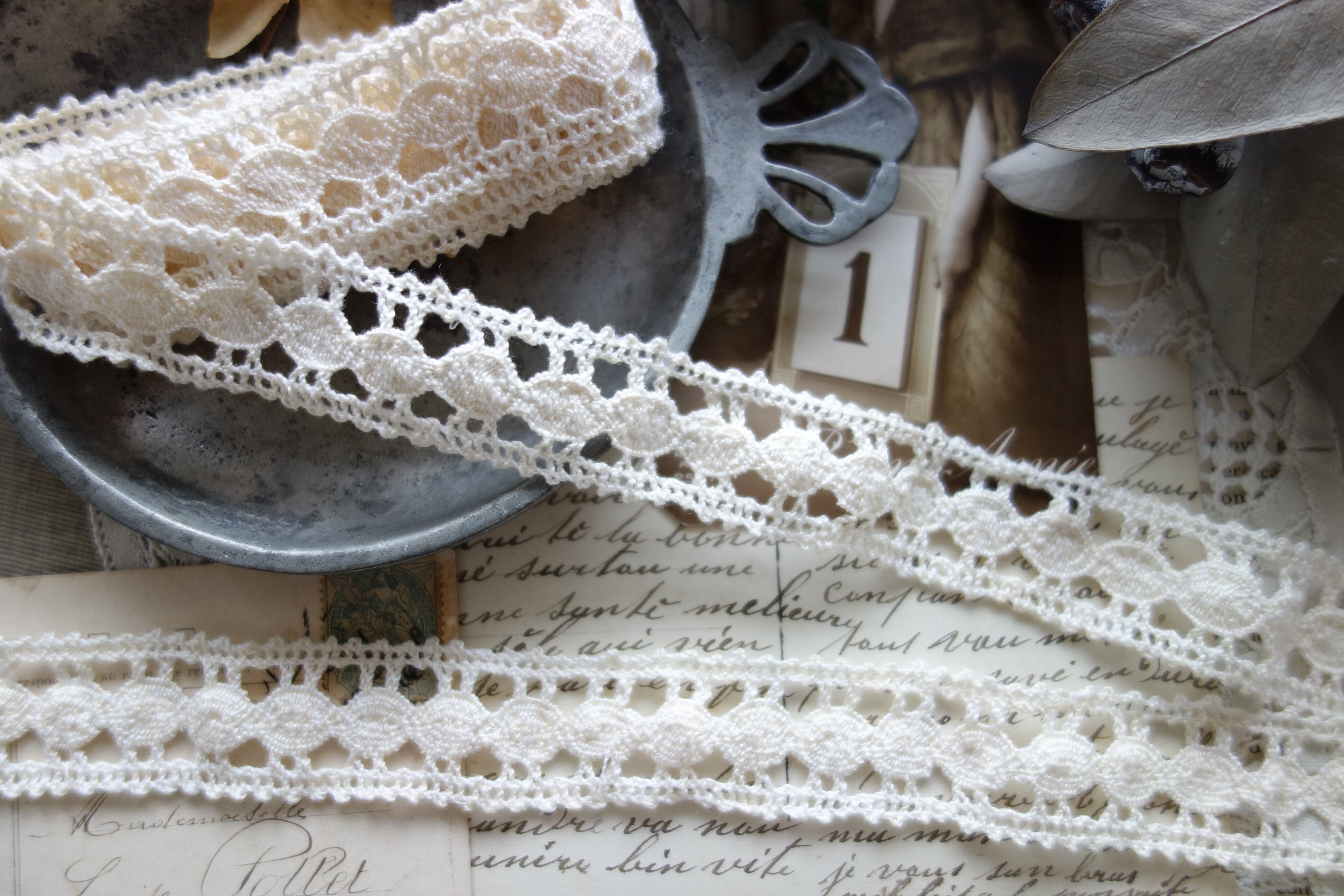 France製 30㎝ アンティーククロッシェレース C643 アイボリー
