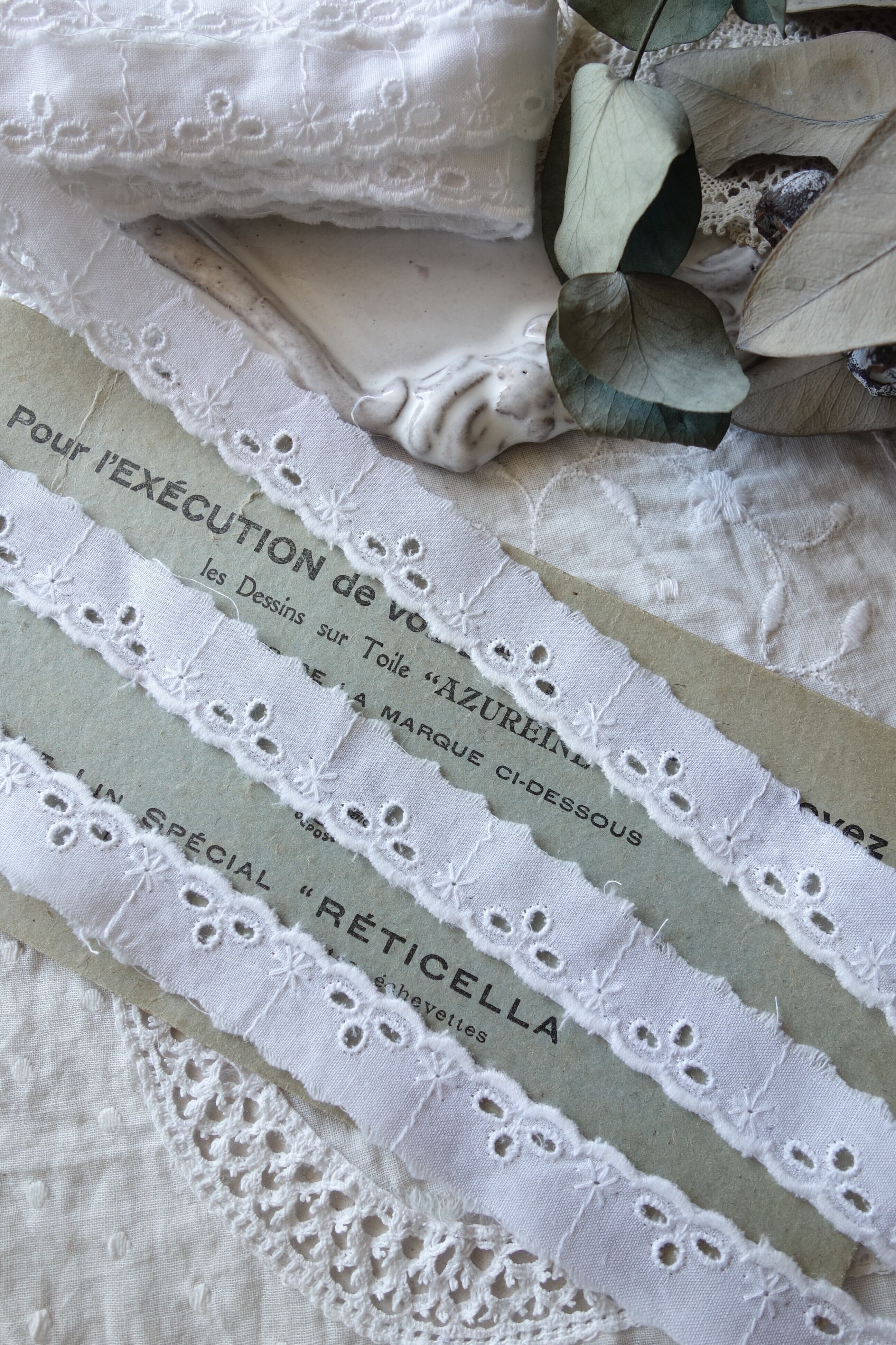 France製 50㎝ アンティーク カットワーク刺繍レース B499 ホワイト