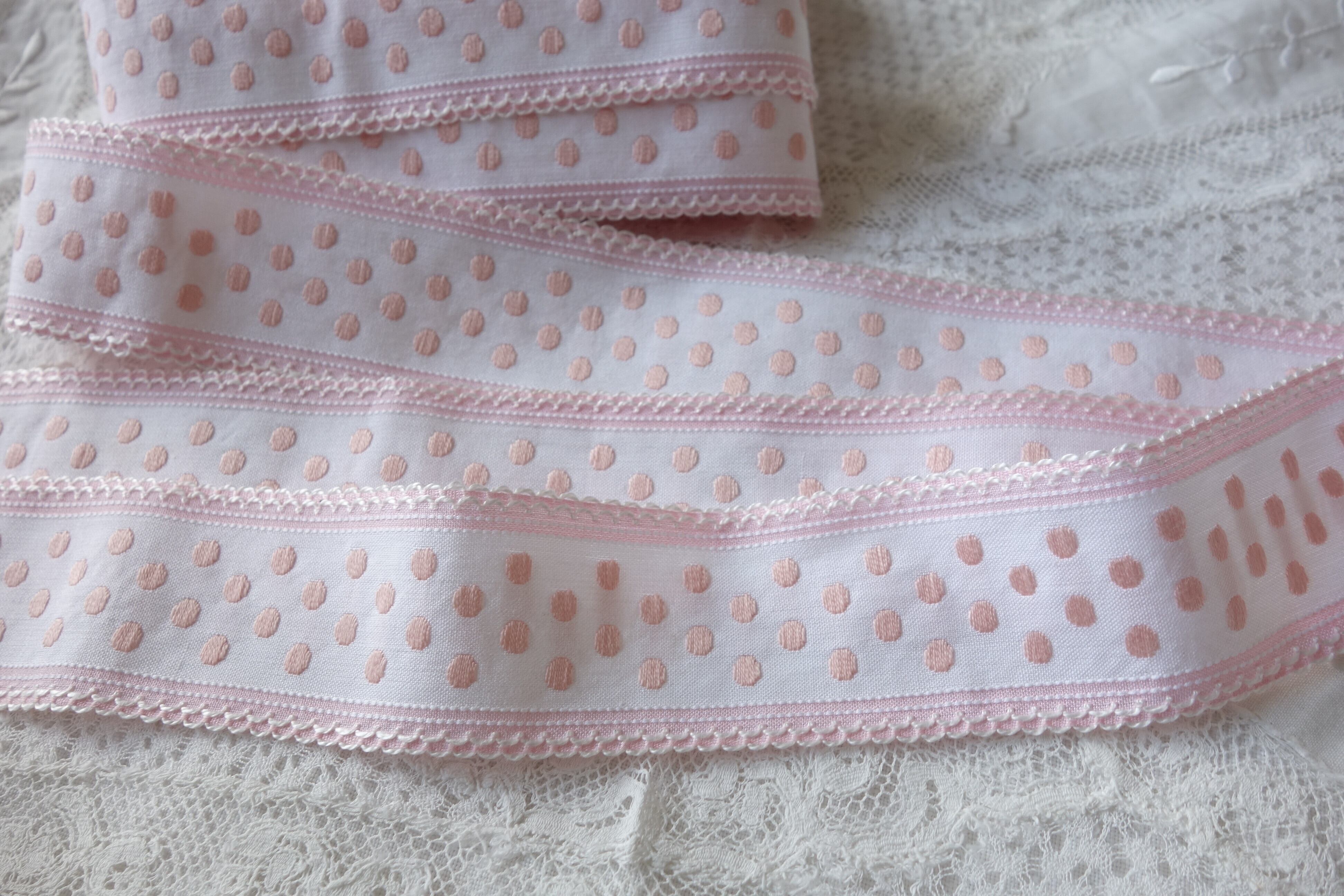 France製 50㎝ ヴィンテージトリムレース B507 ピンク水玉
