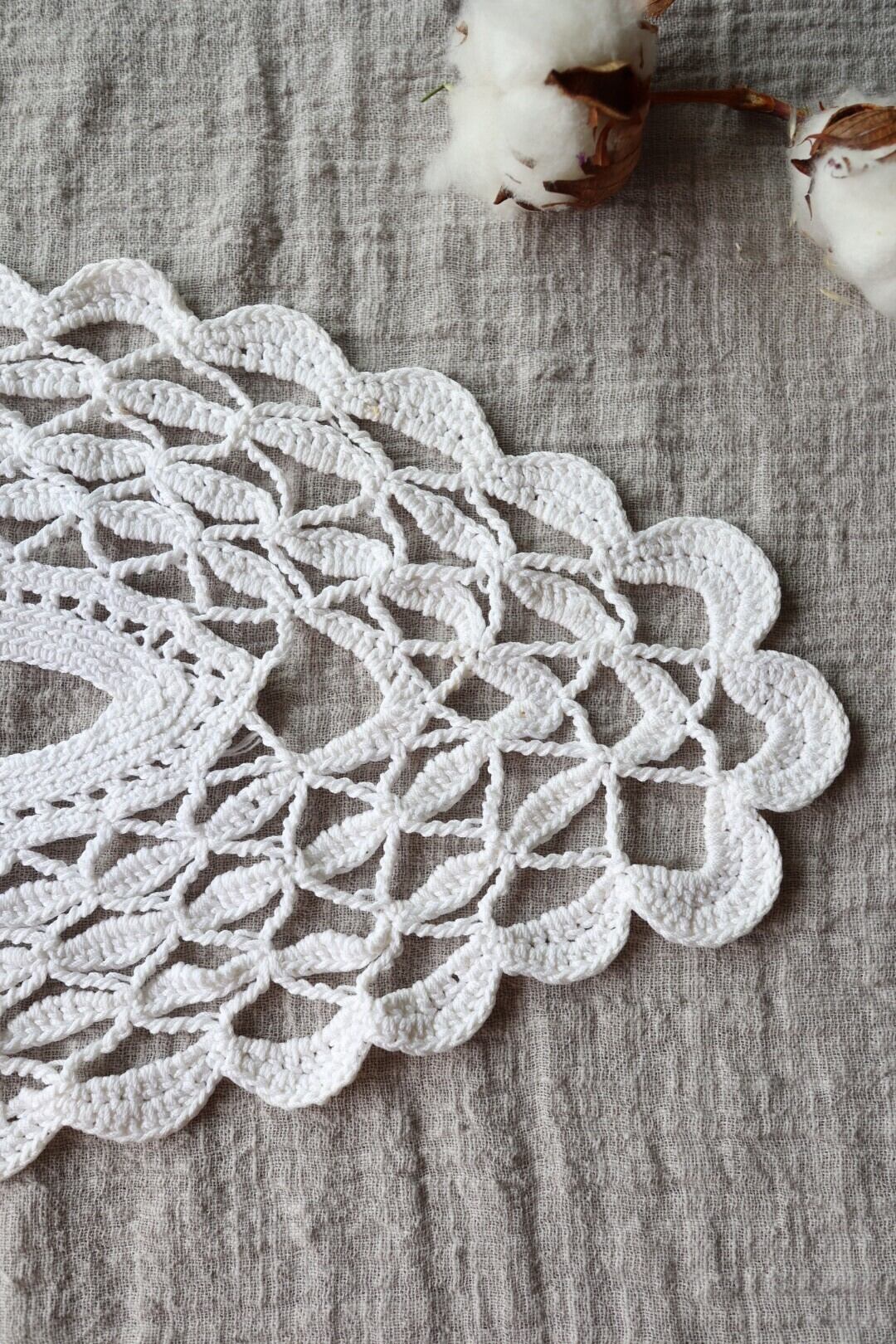 フランス 41×21㎝ アンティークレースドイリー B511 ホワイト