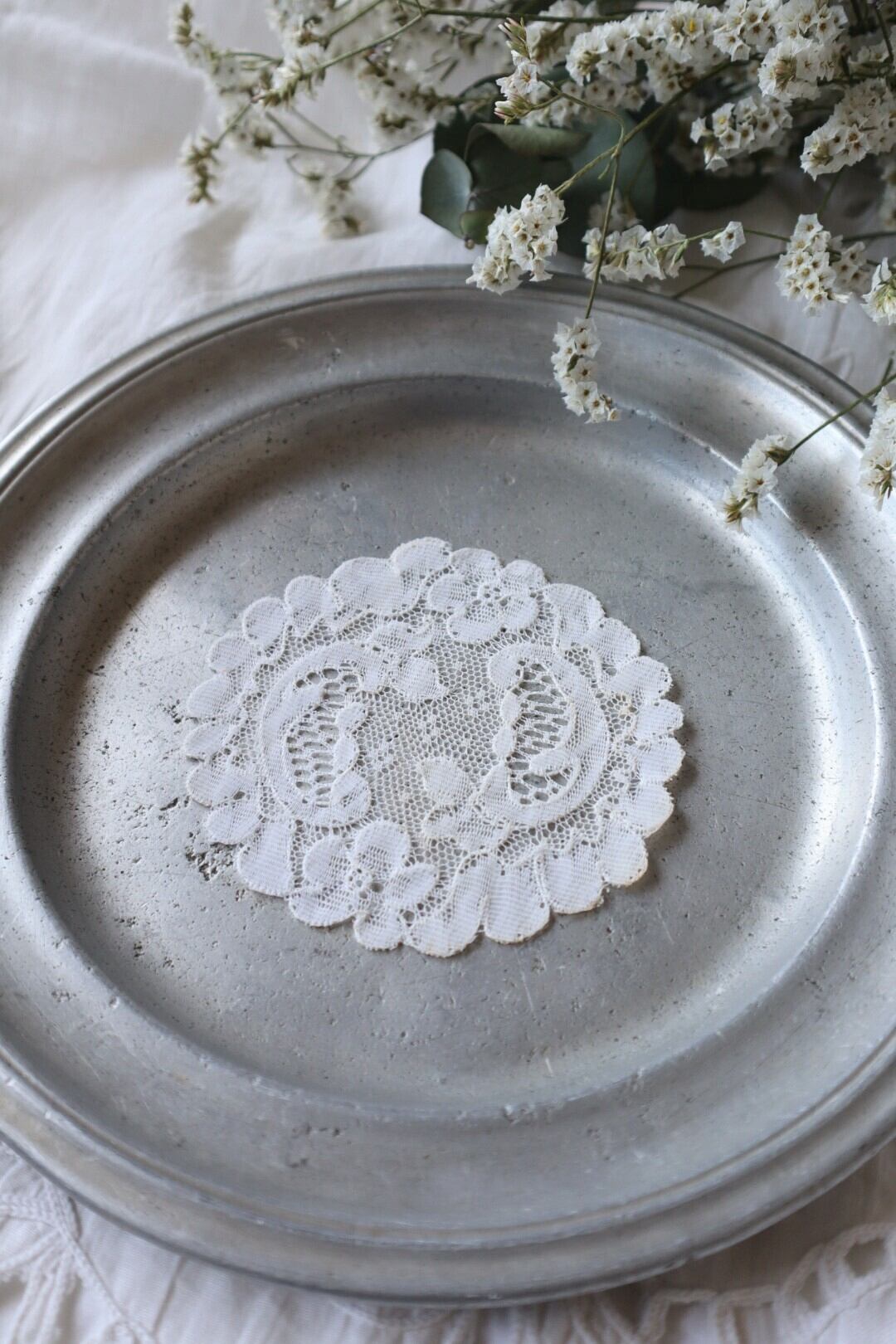 刺繍飾りのあるモチーフレース丸形