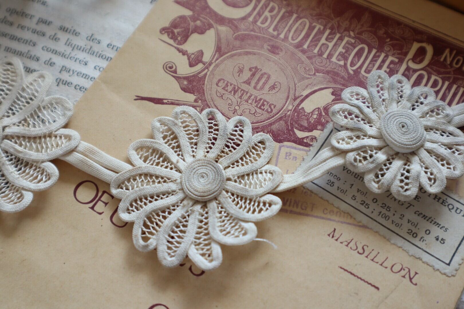 France製 アンティーク花モチーフ B543 エクリュ