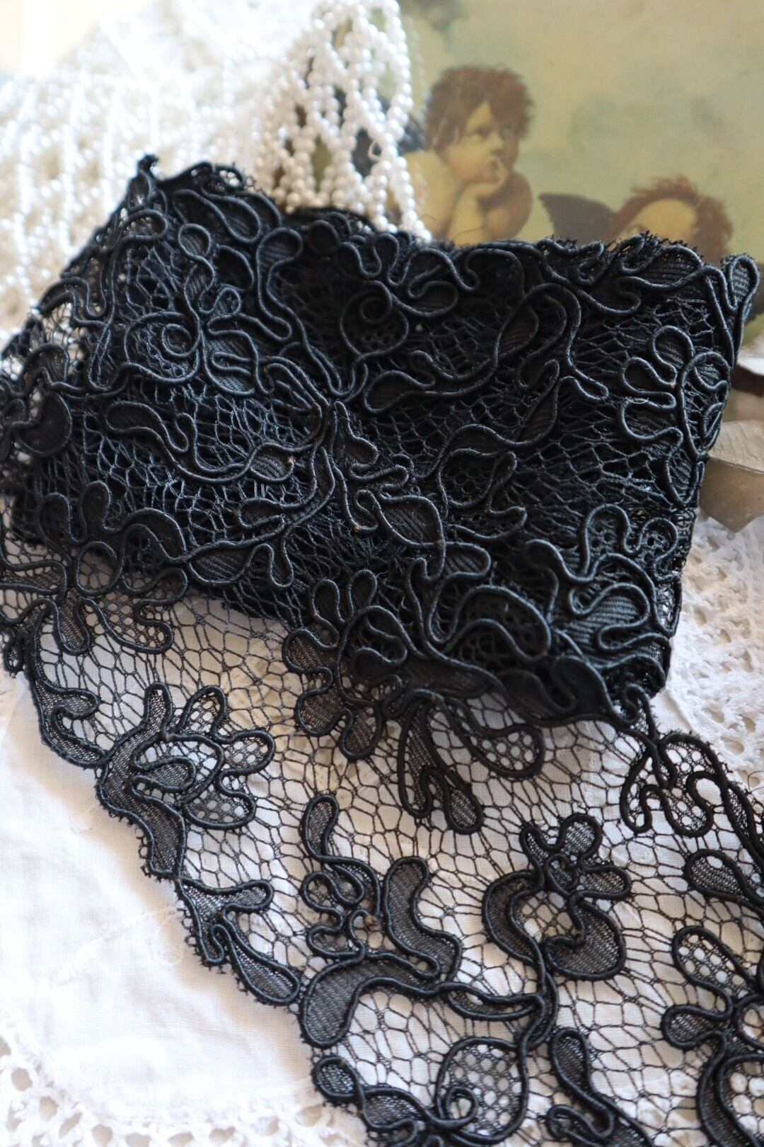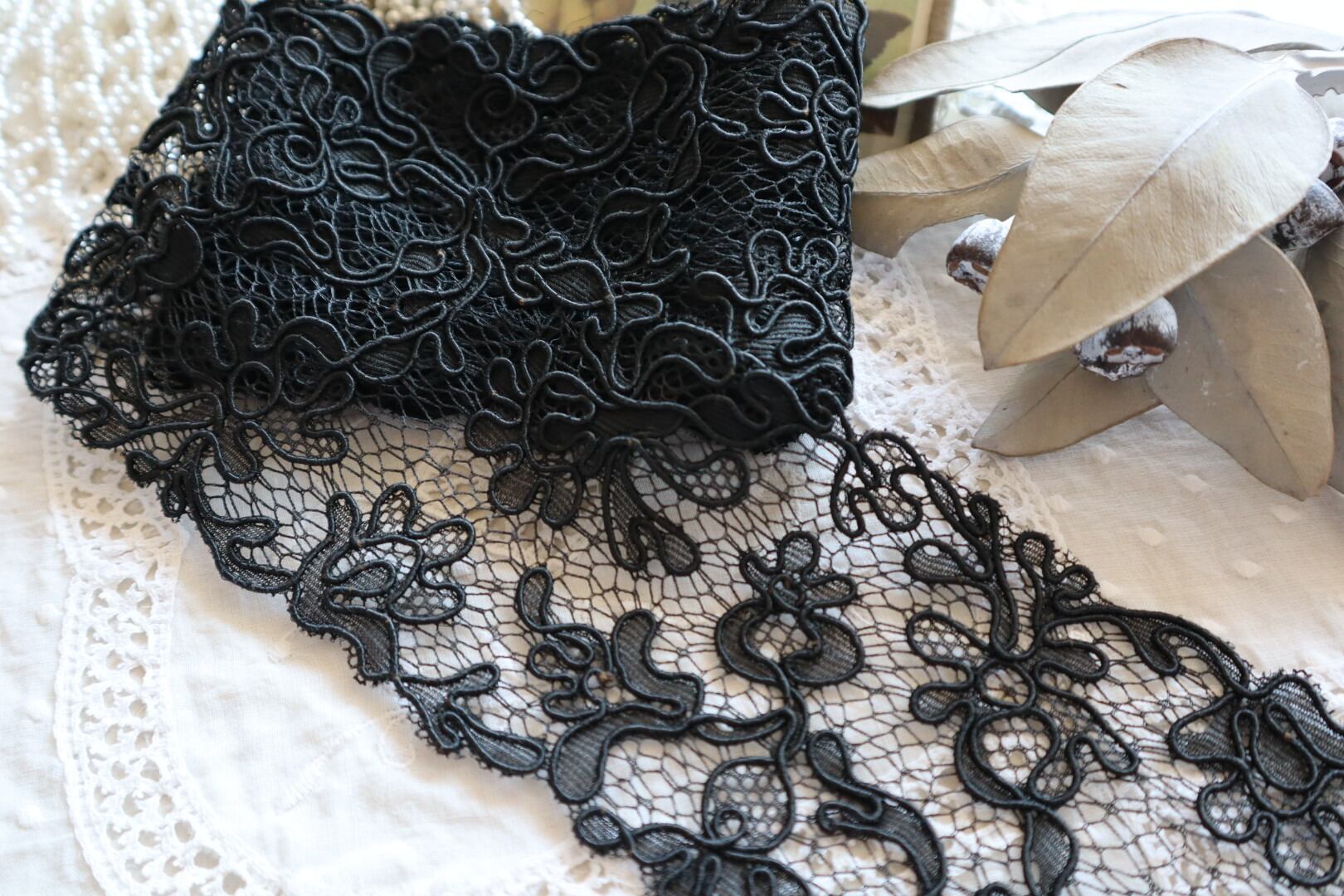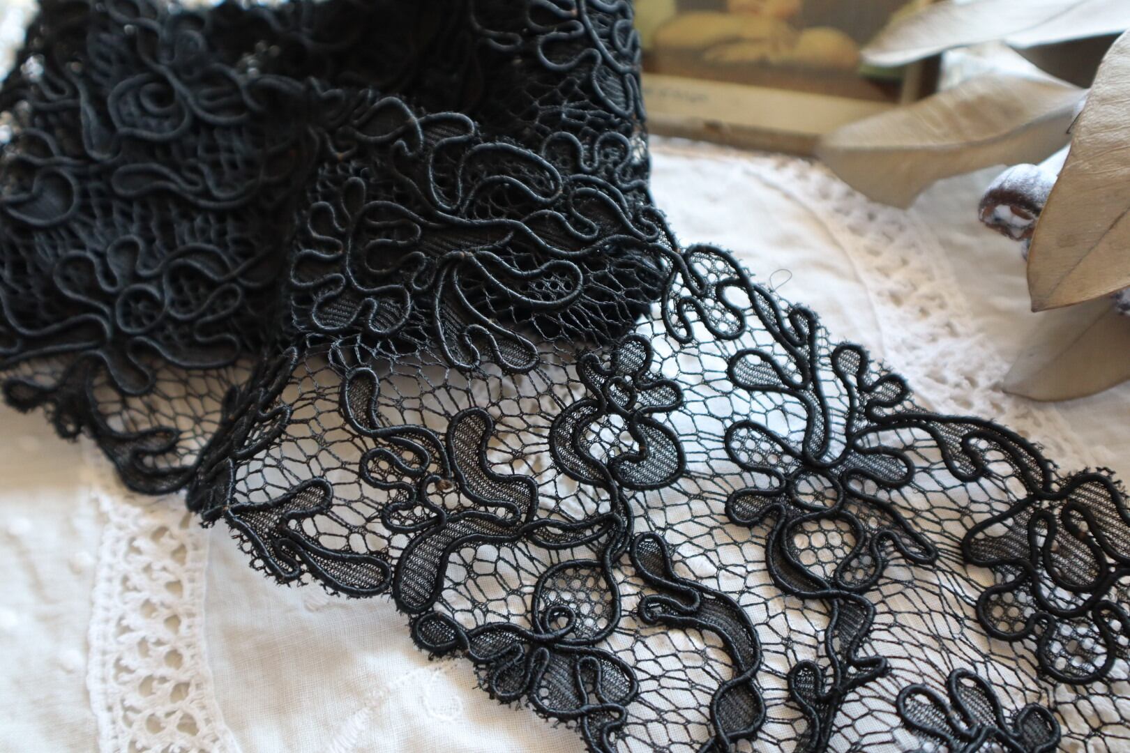 France製 30㎝ ヴィンテージブラックレース C694 ブラック