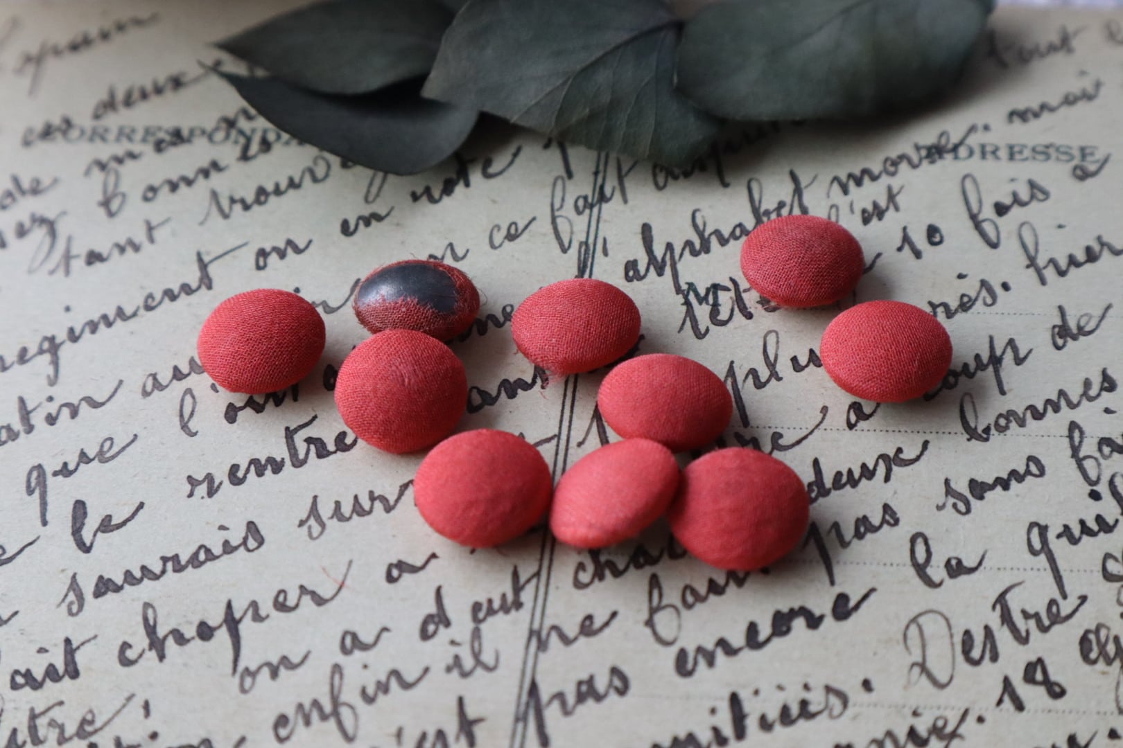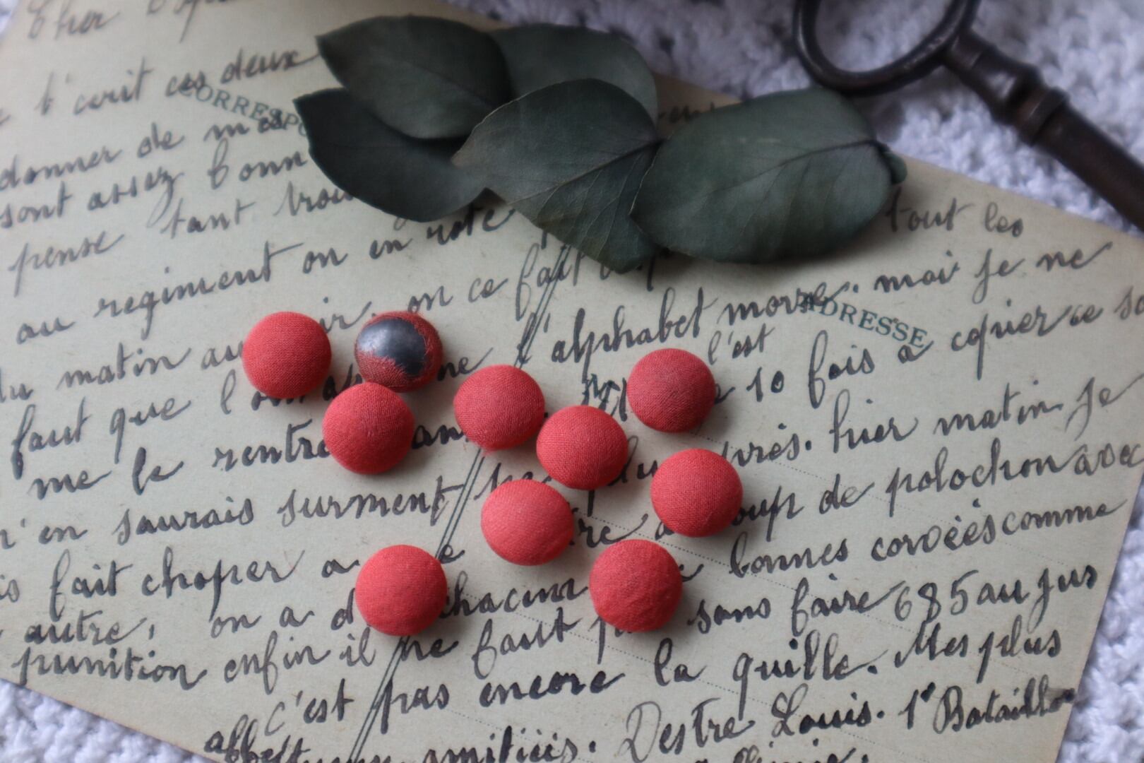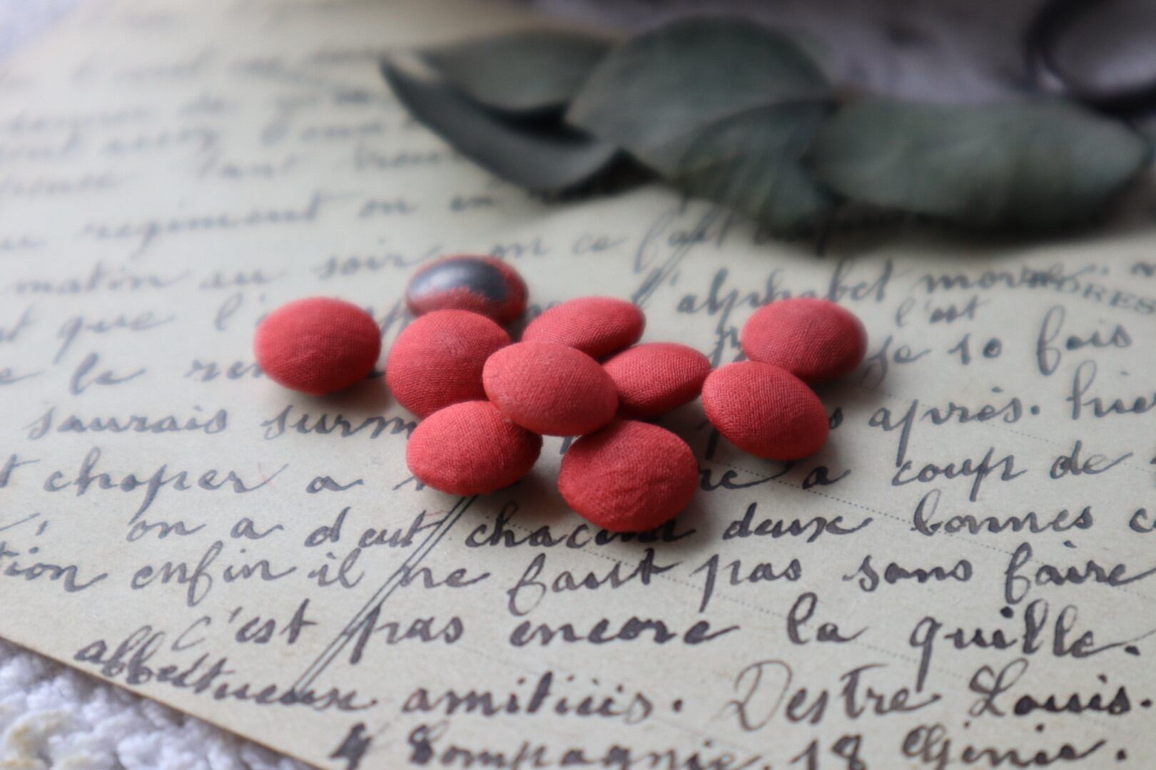 France製 9.5㎜ アンティークファブリックボタン A1248 コーラル