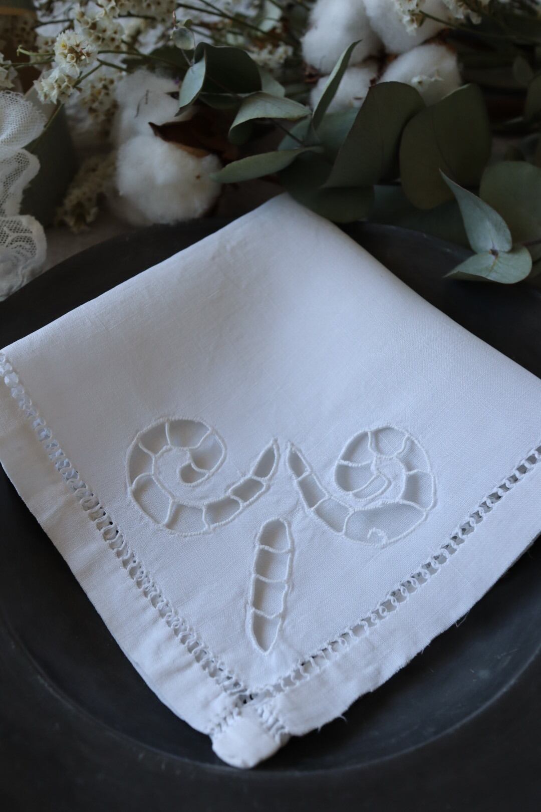 カットワーク刺繍とドロンワークの美しいハンカチ