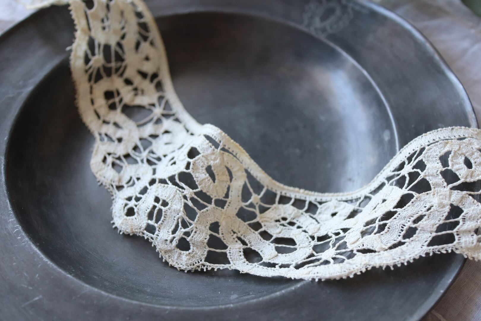 アンティークのバテンレースをお楽しみ下さいませ。