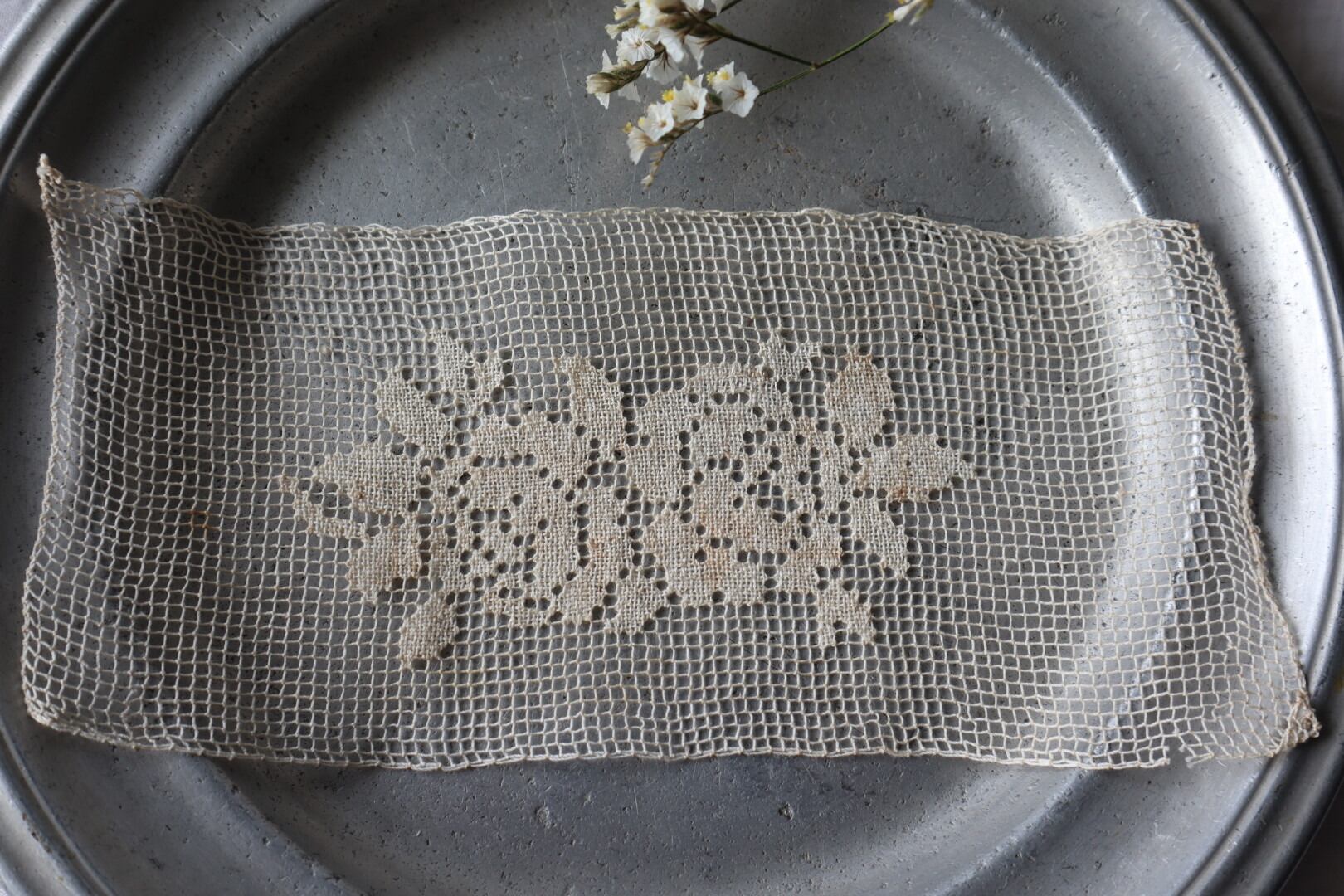 中央に2つの薔薇デザインのフィレレース