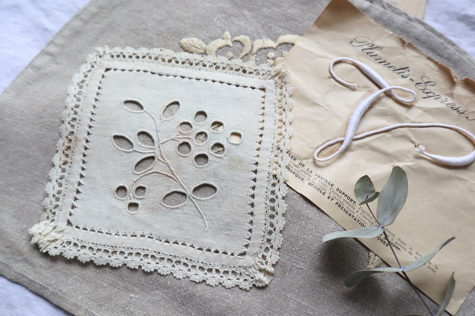 植物柄のカットワーク刺繍とドロンワークの美しいお品物です。