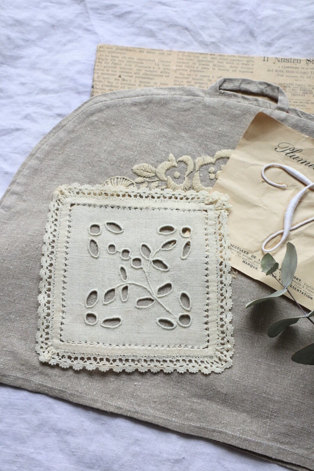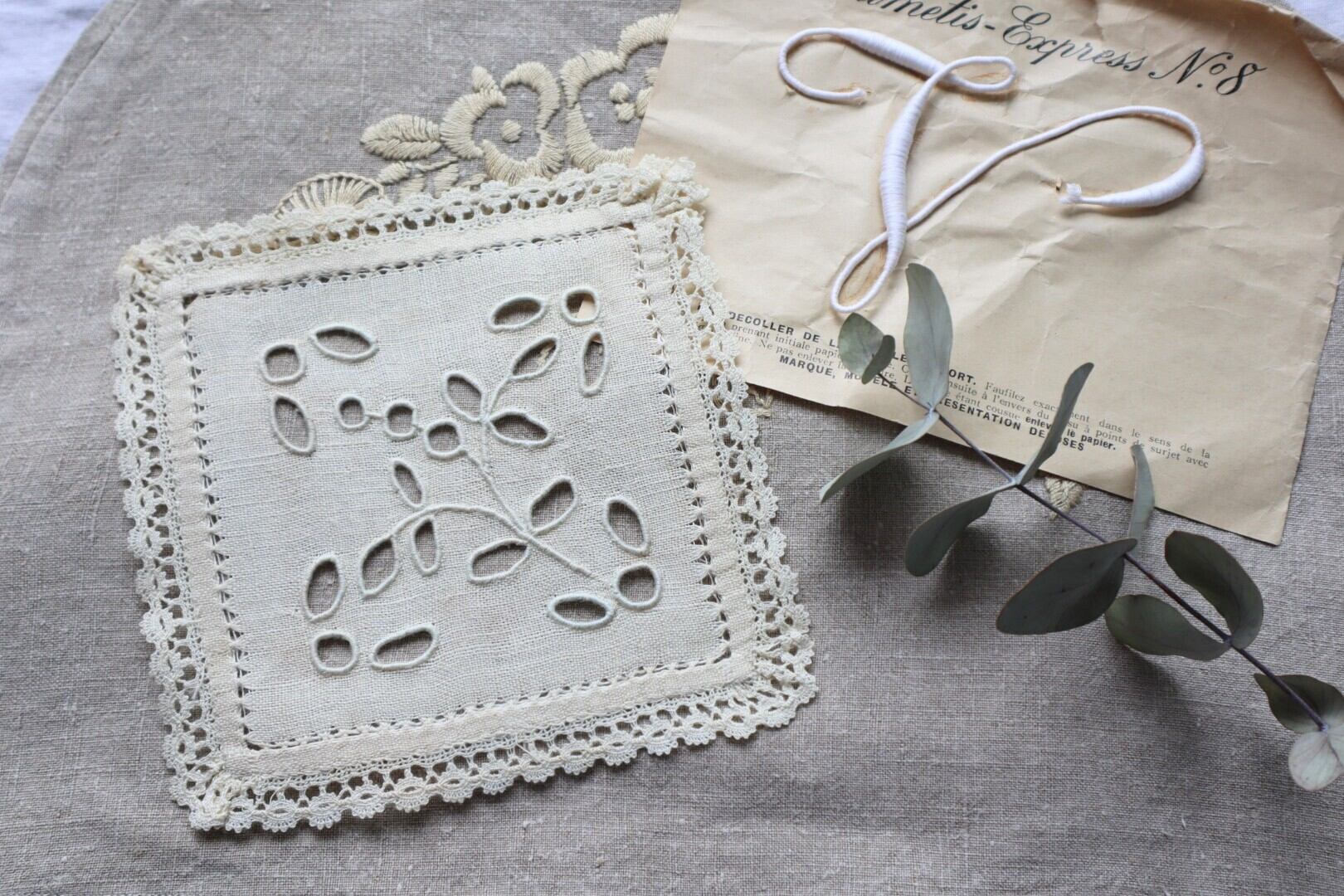 植物柄のカットワーク刺繍とドロンワークの美しいお品物です。