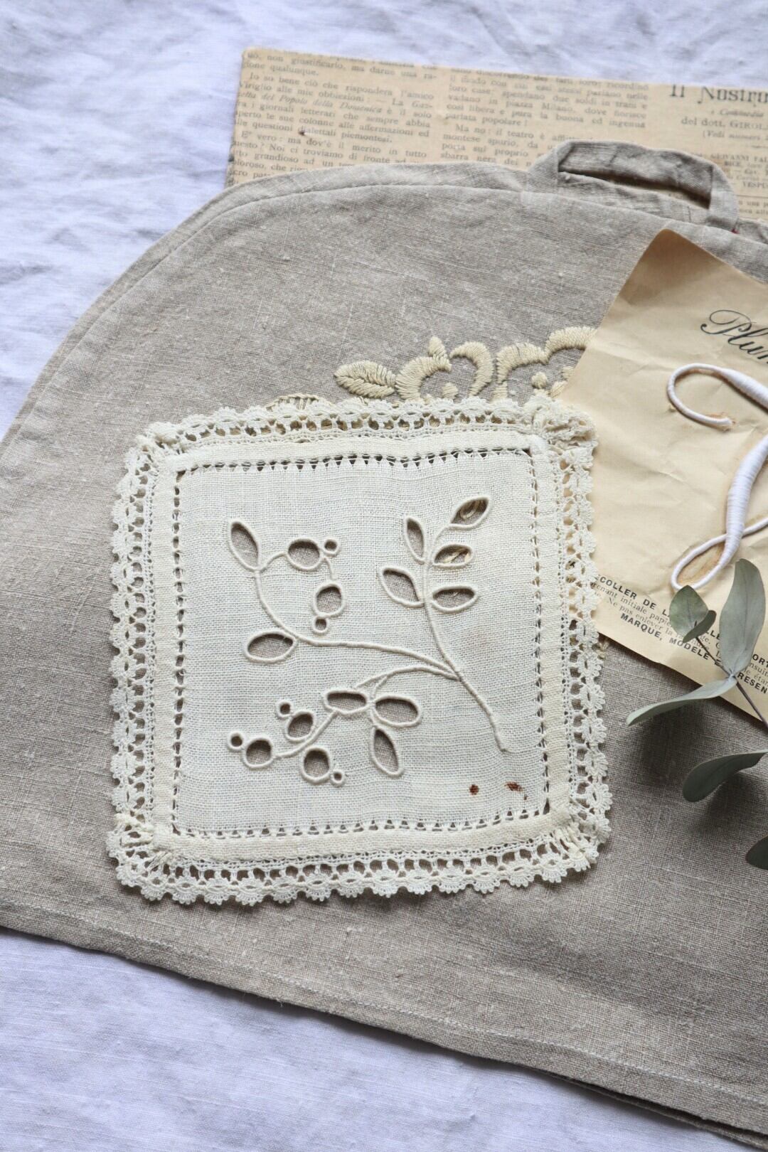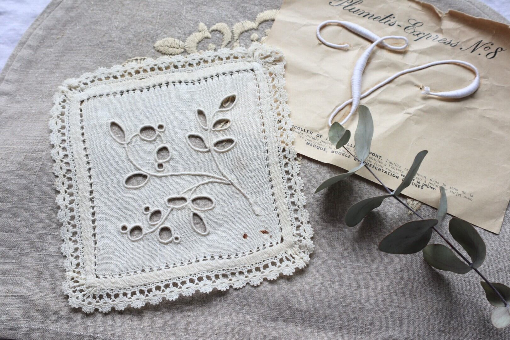植物柄のカットワーク刺繍とドロンワークの美しいお品物です。