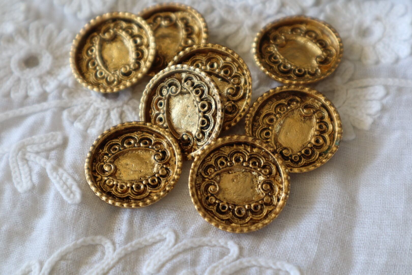 France製 20㎜ アンティークメタルボタン A1267 ゴールド