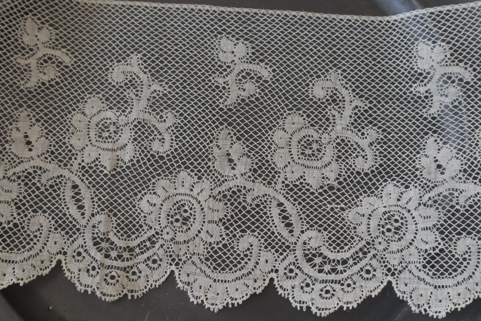 幅の広い素敵な花柄ボビンレースです。