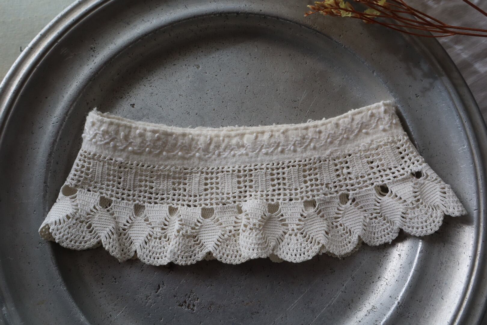 上部は刺繍飾りが入っており手刺繍の温かみも感じられます。