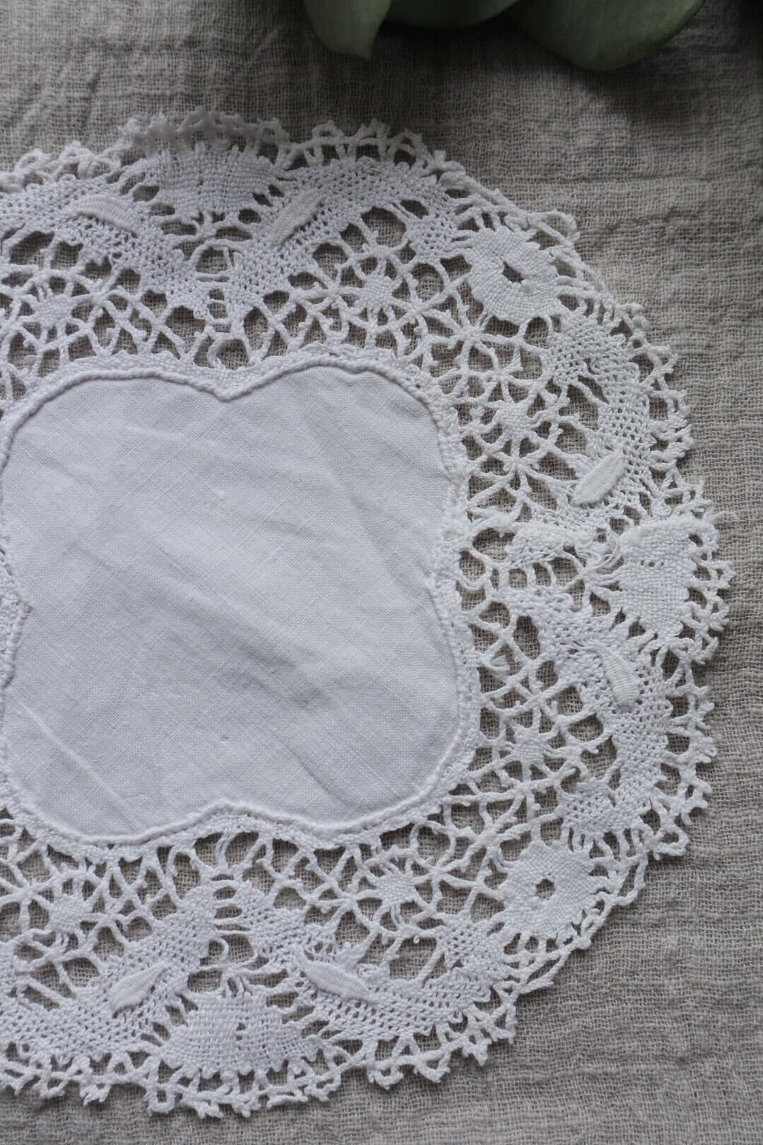 France製 18㎝ アンティークレースドイリー B586 ホワイト