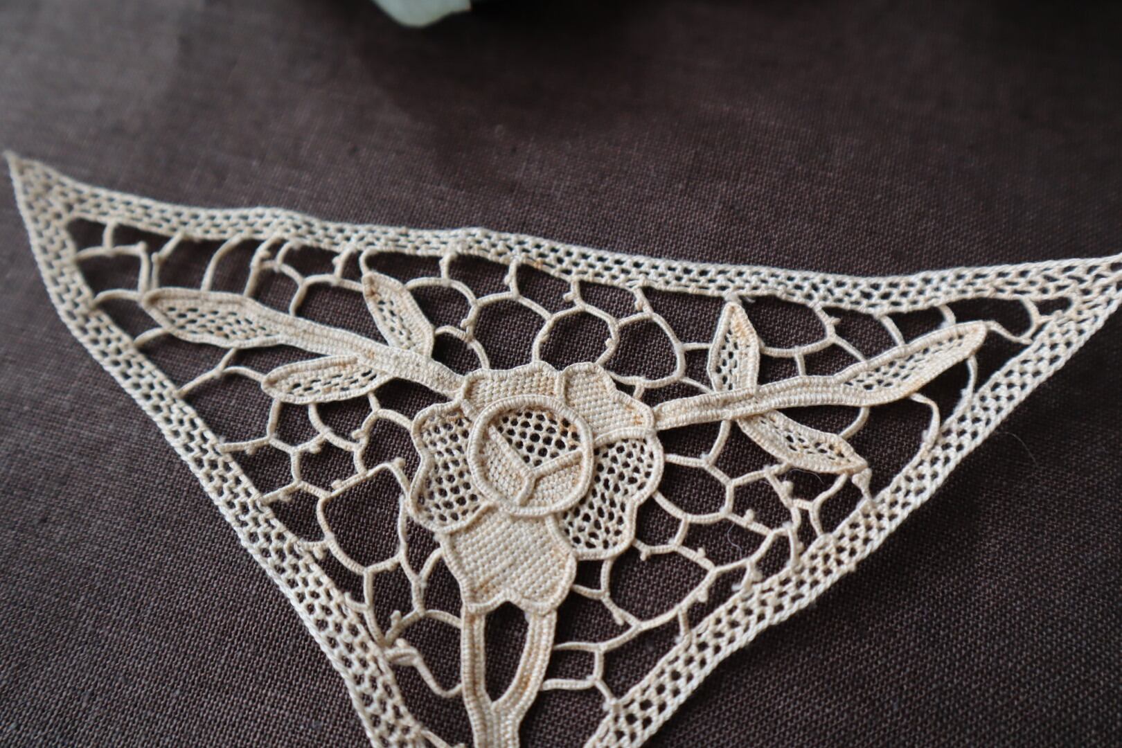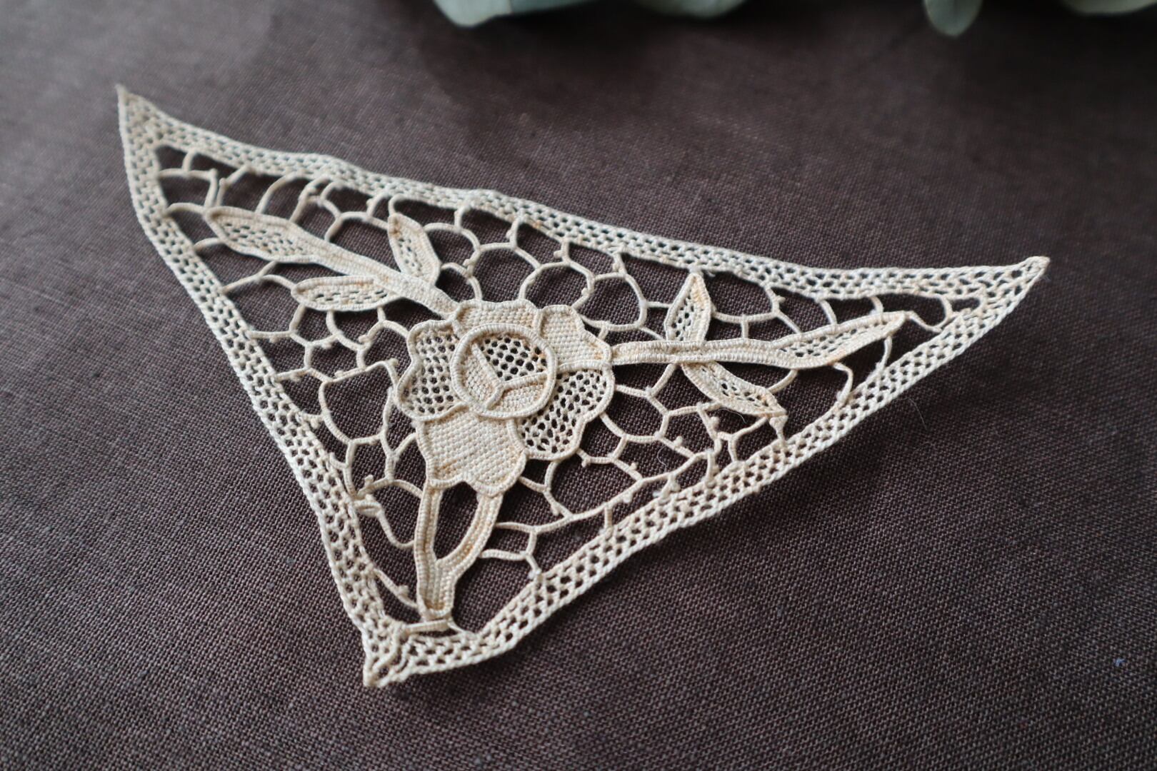 中央のお花がポイントの三角形のモチーフレース