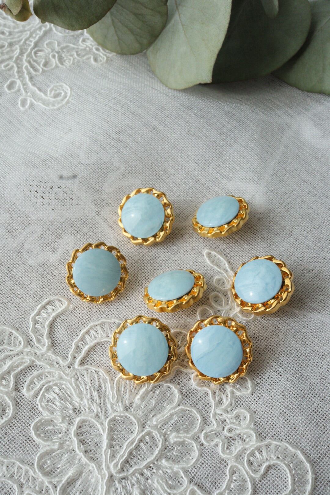 France製 15㎜ ヴィンテージボタン A1323 ブルー、ゴールド