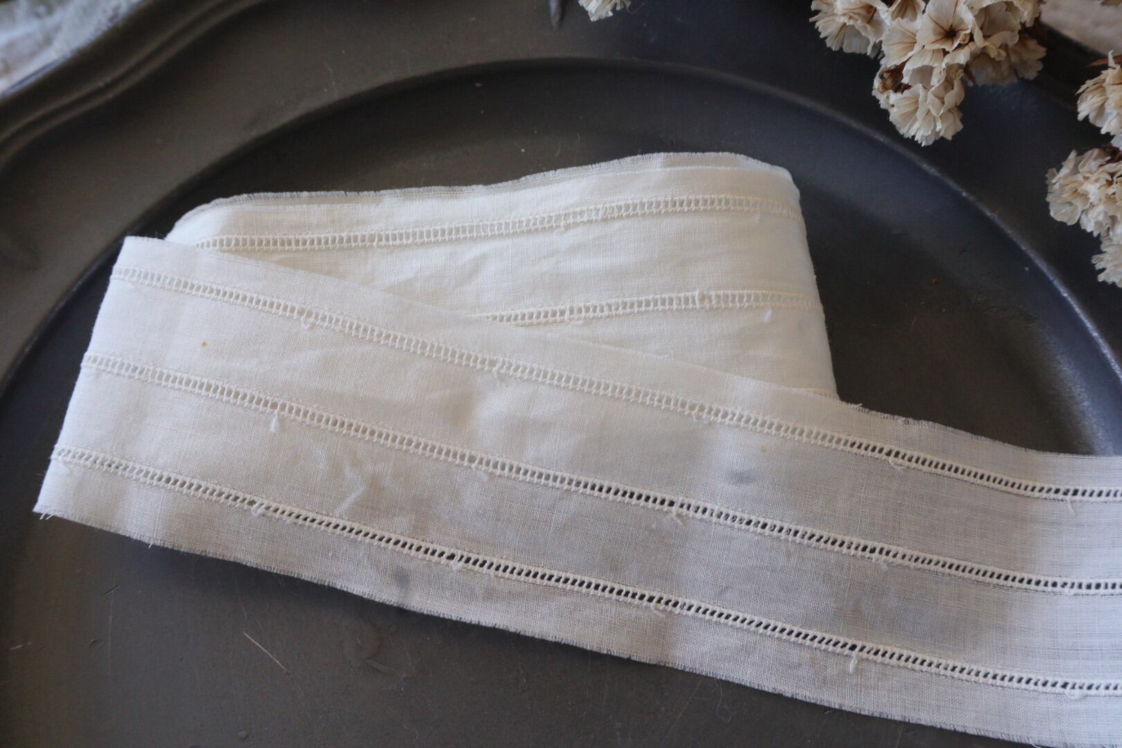 細いカットワーク刺繍が3本入っています。