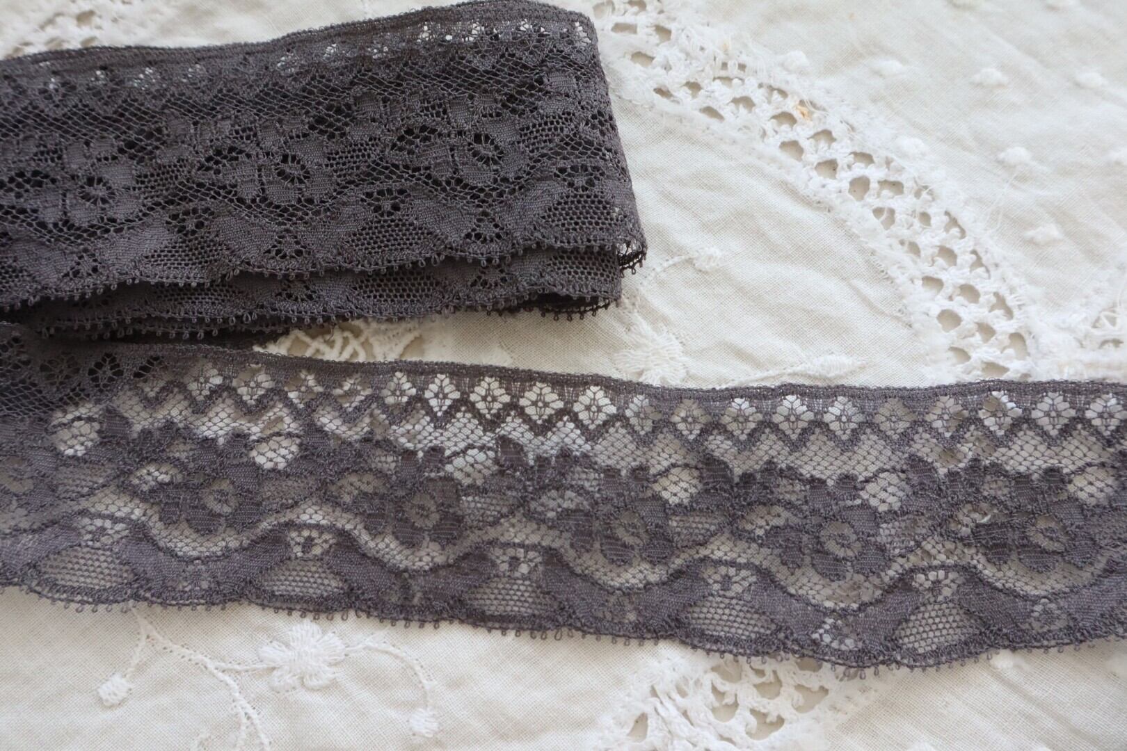 France製 40㎝ ヴィンテージレース 花柄 C752 グレー