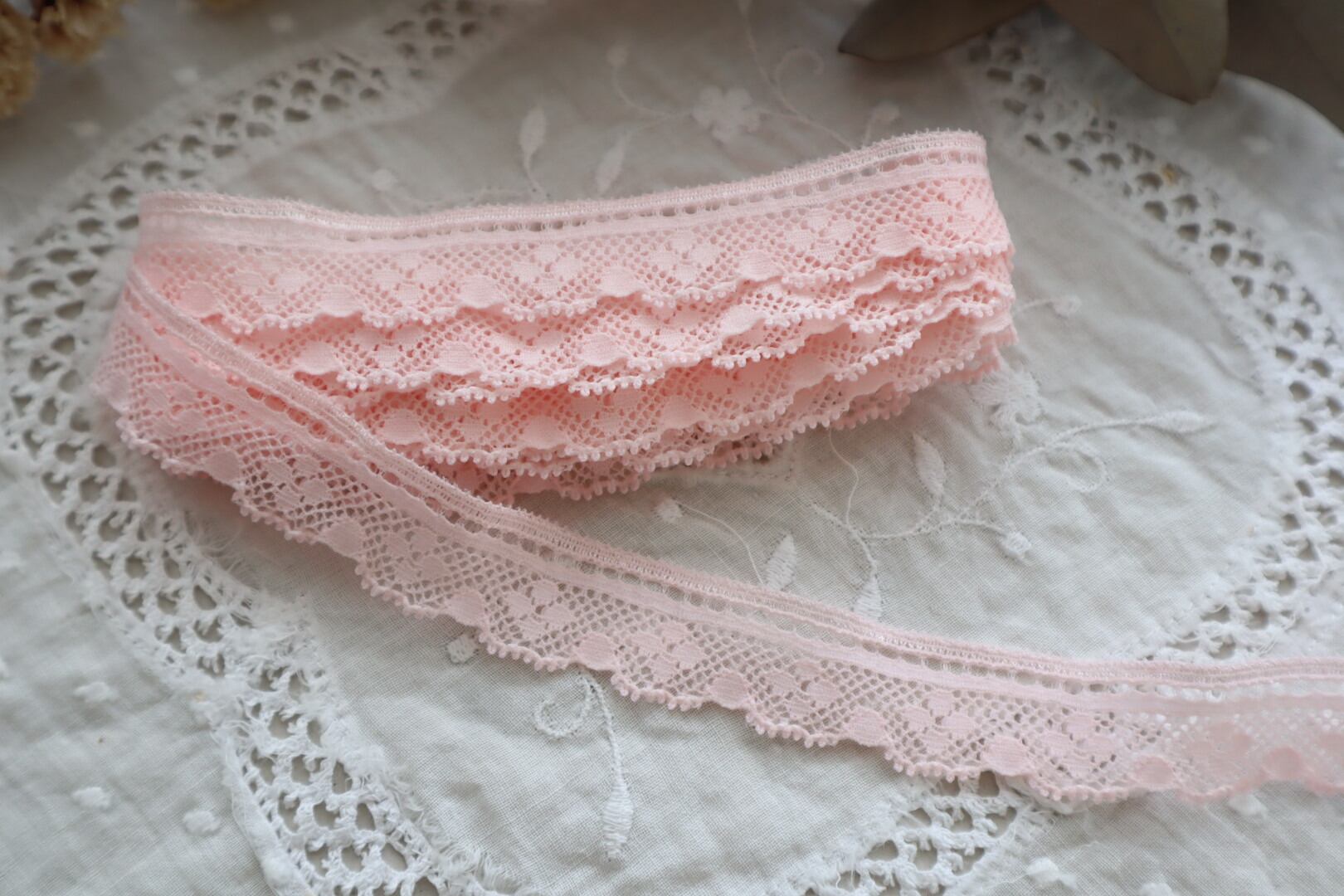 France製 50㎝ ヴィンテージレース 花柄 C755 ピンク