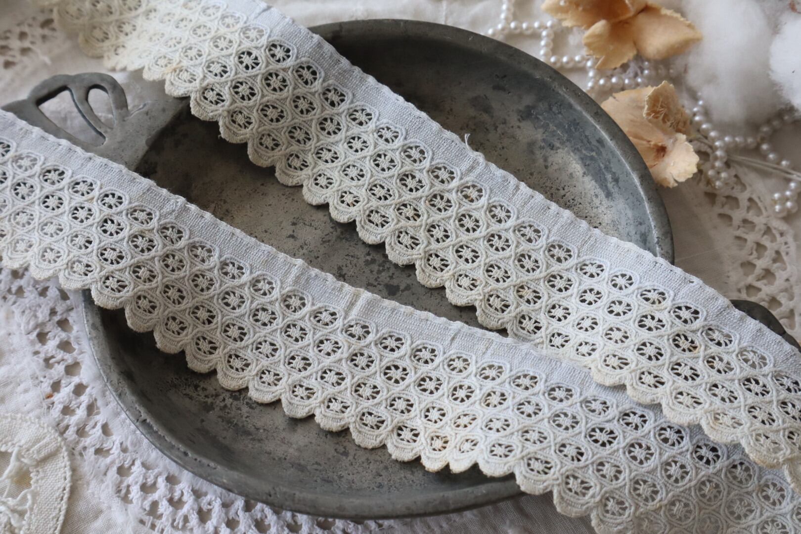 France製 90㎝ アンティークカットワーク刺繍レース C760