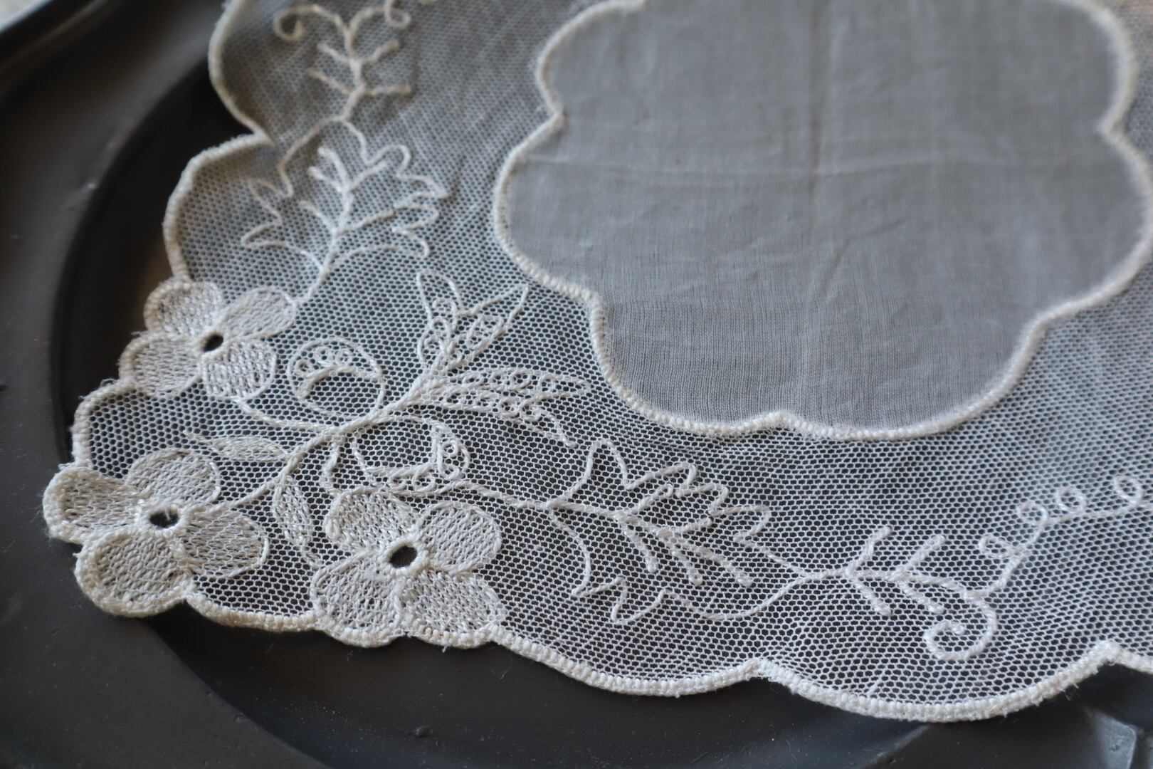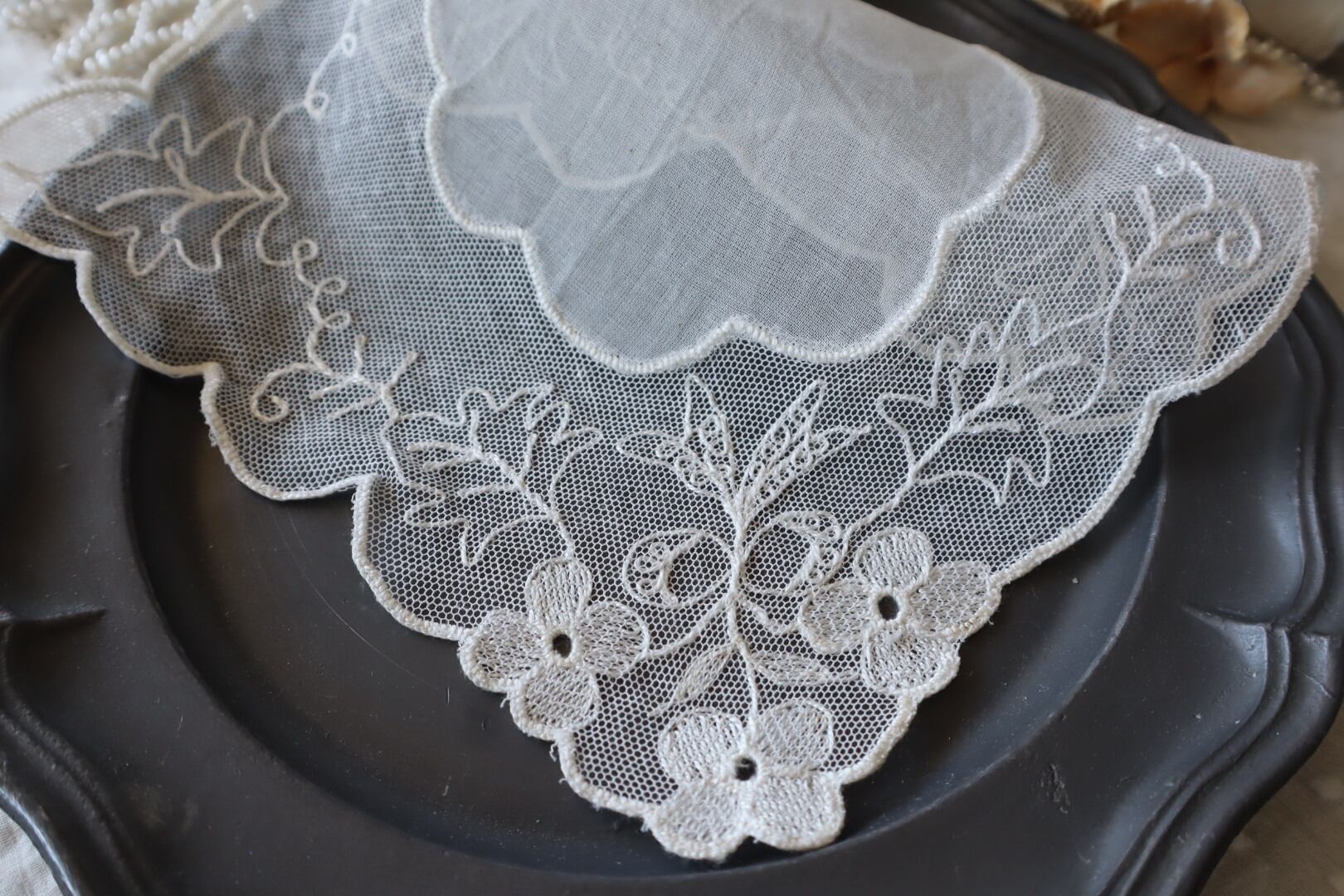 細かいネットに施された刺繍が美しいお品物