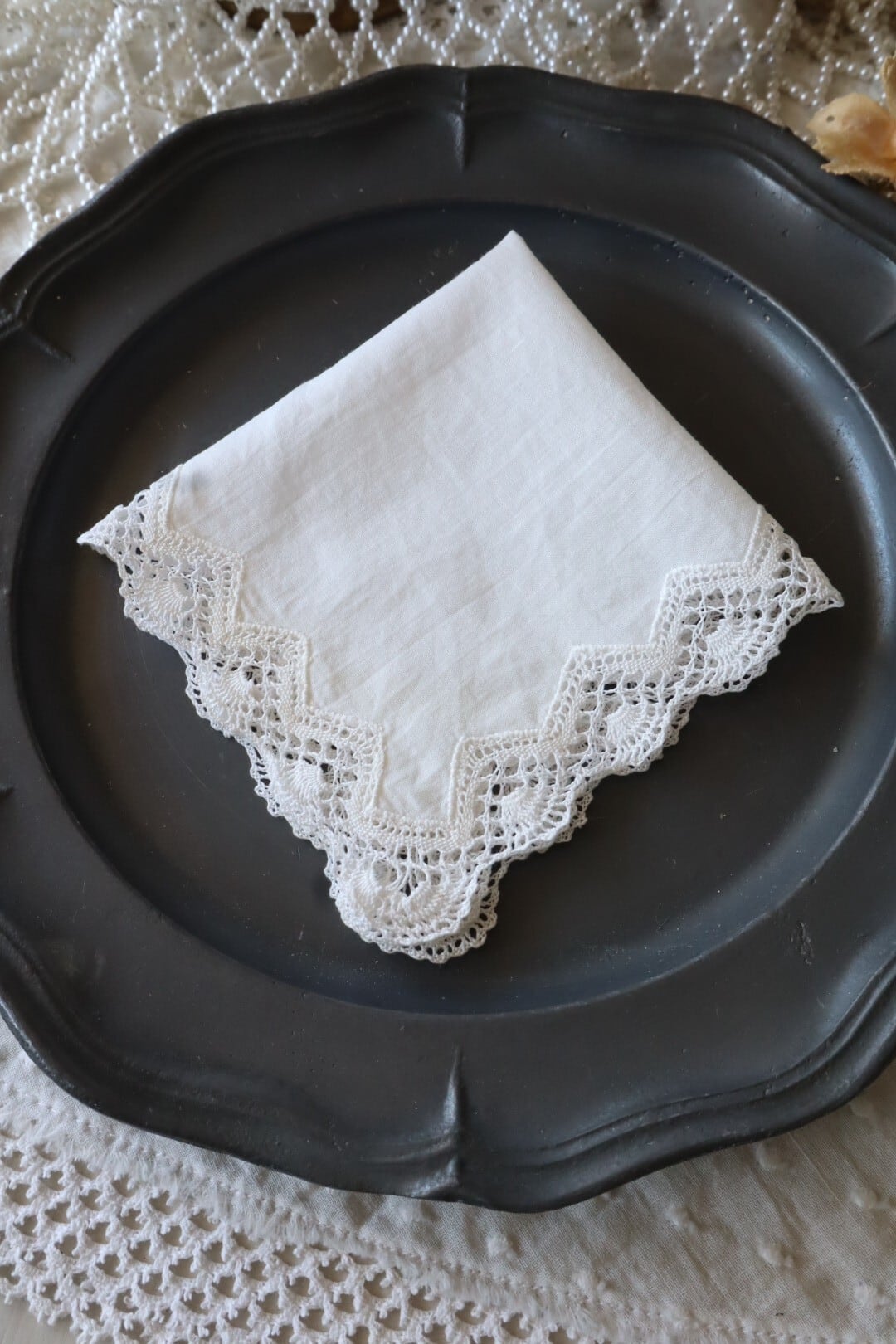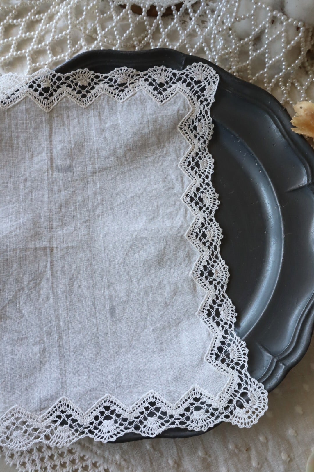 ボビンレースが素敵な正方形のハンカチ