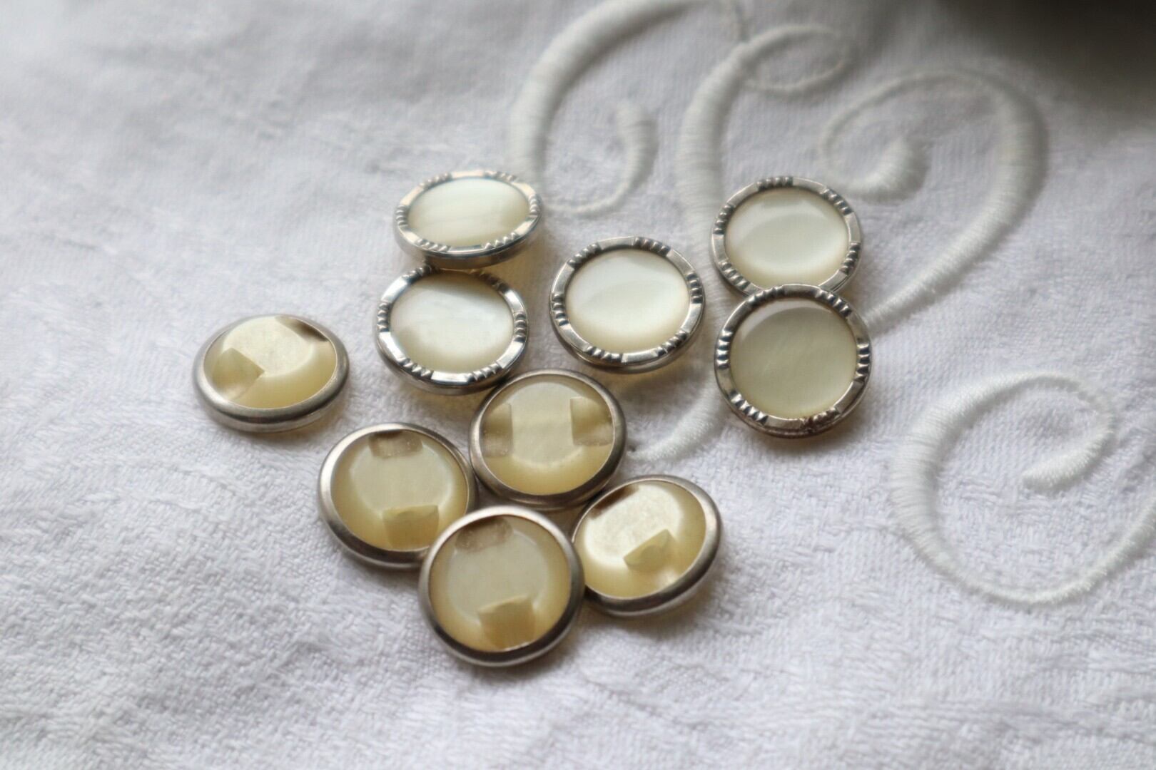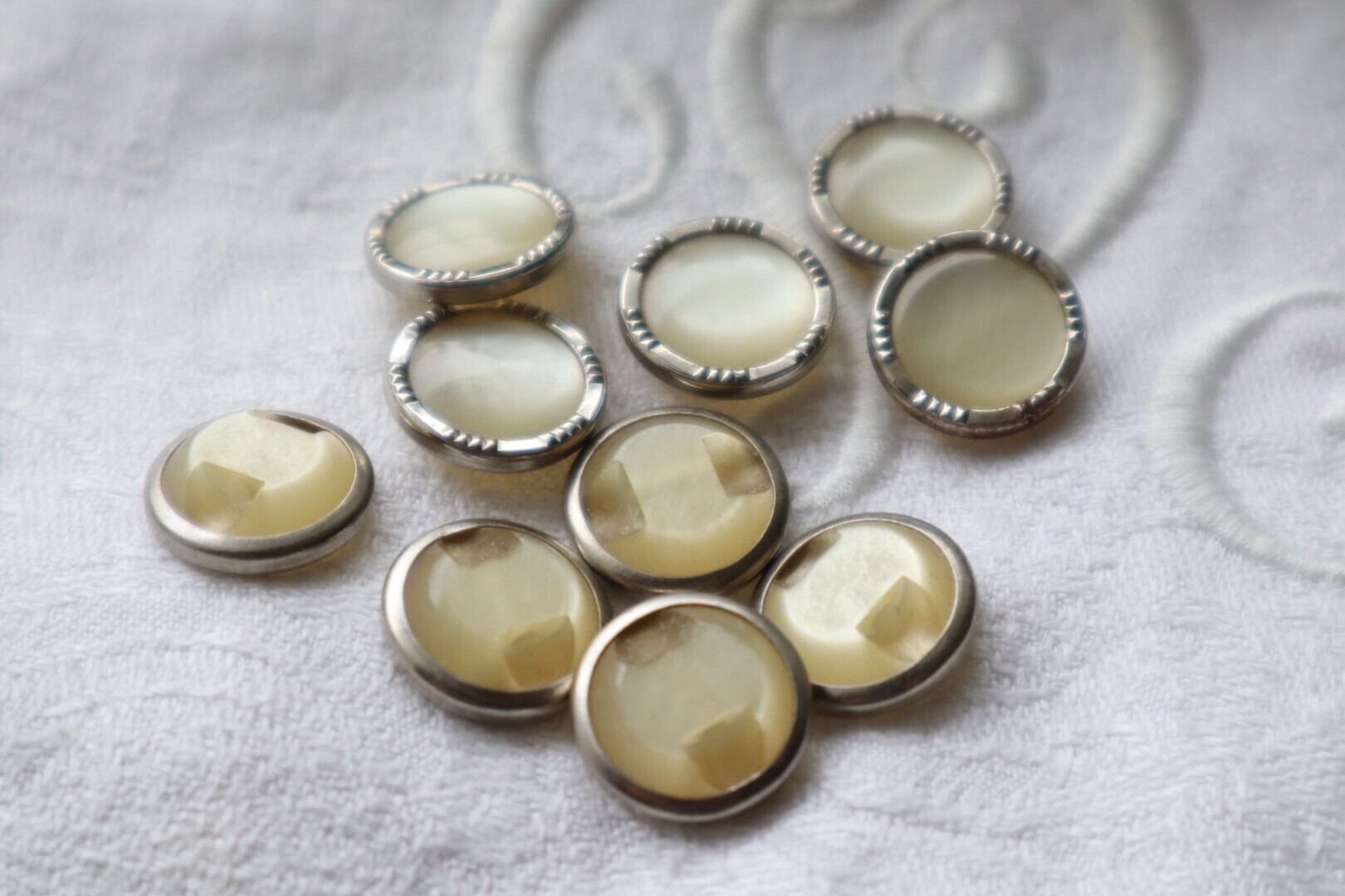 ヴィンテージの風合いあるシルバー枠が素敵なボタン