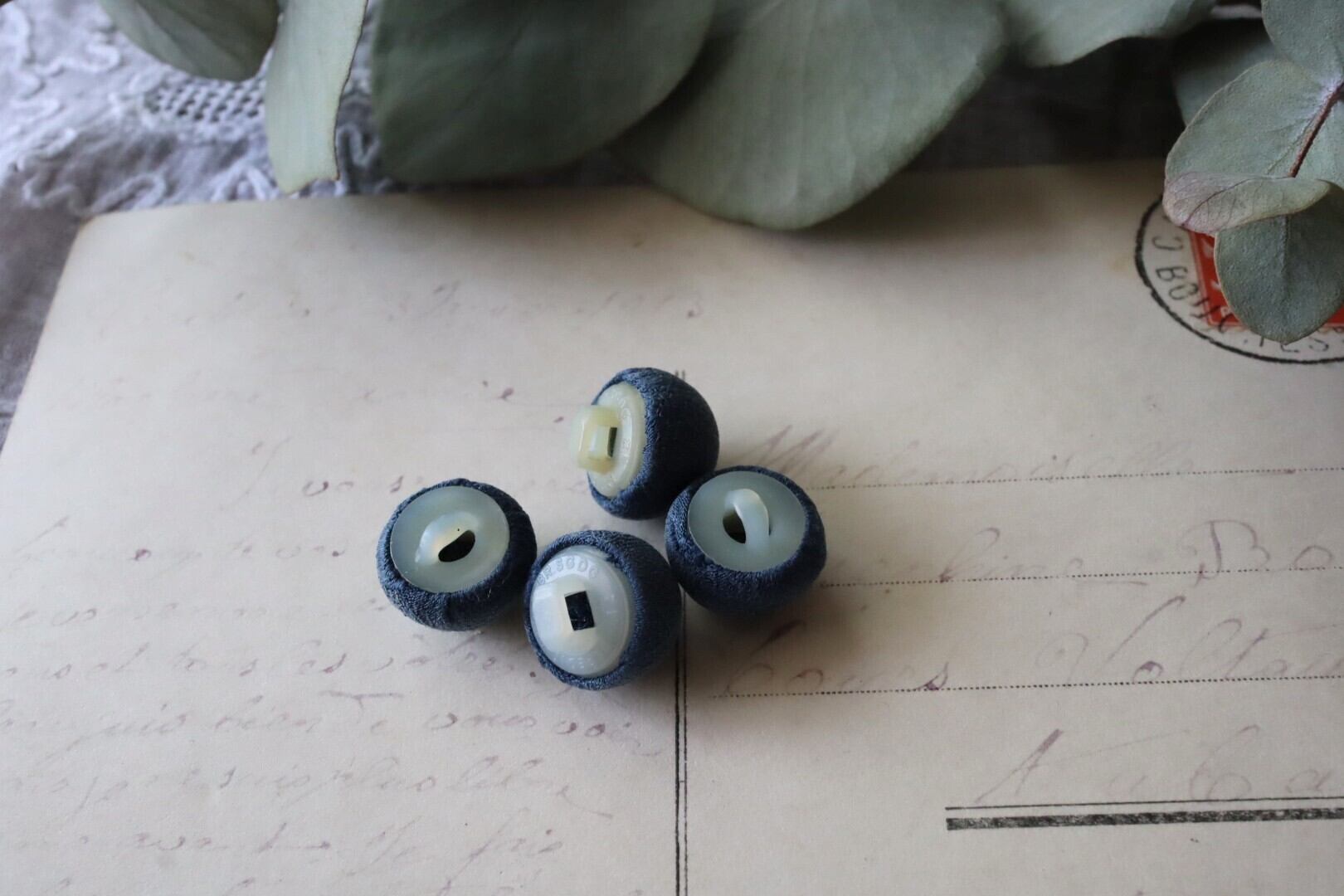 France製 4個 12㎜ ヴィンテージボタン 布製 A1366 ネイビー