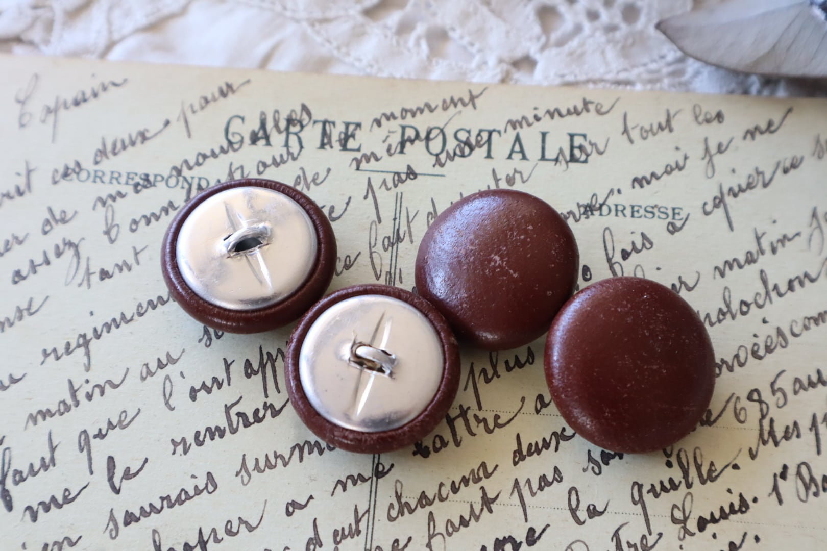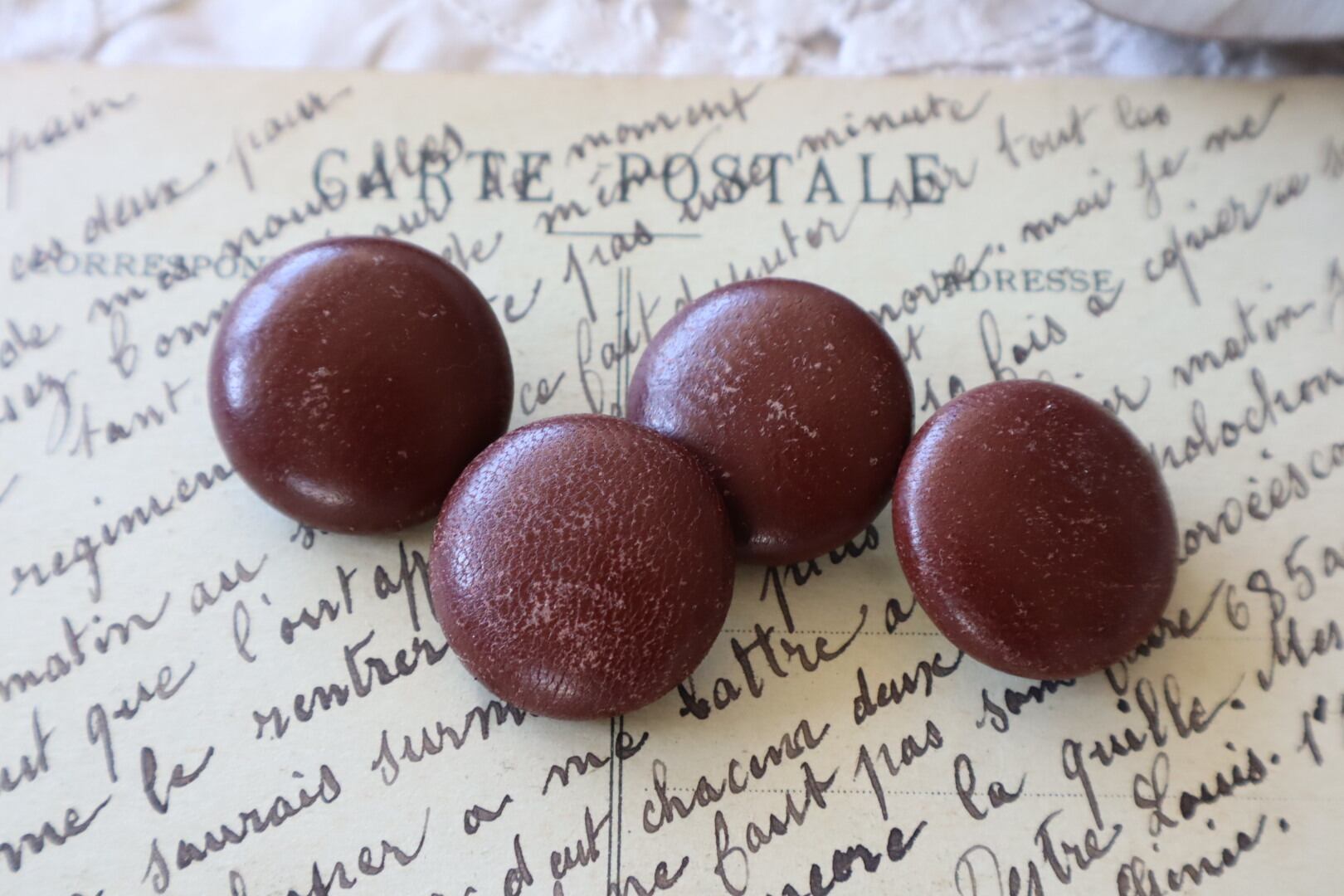 France製 4個 23㎜ ヴィンテージ革ボタン A1337 ブラウン