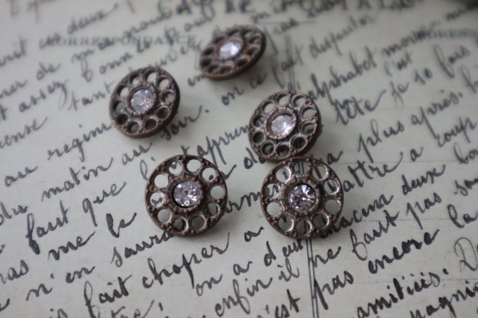 France製 14㎜ アンティークメタルボタン A1390 ゴールド