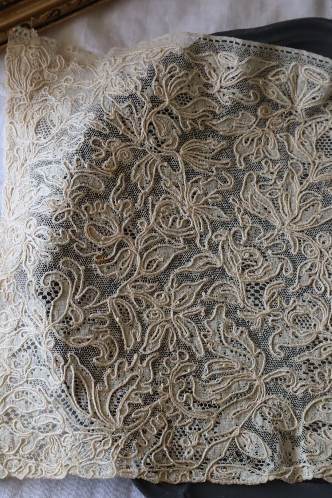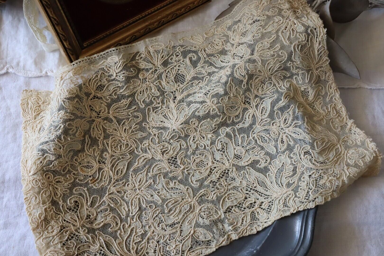 繊細なボビンレースに刺繍飾りのある趣のあるハギレレース