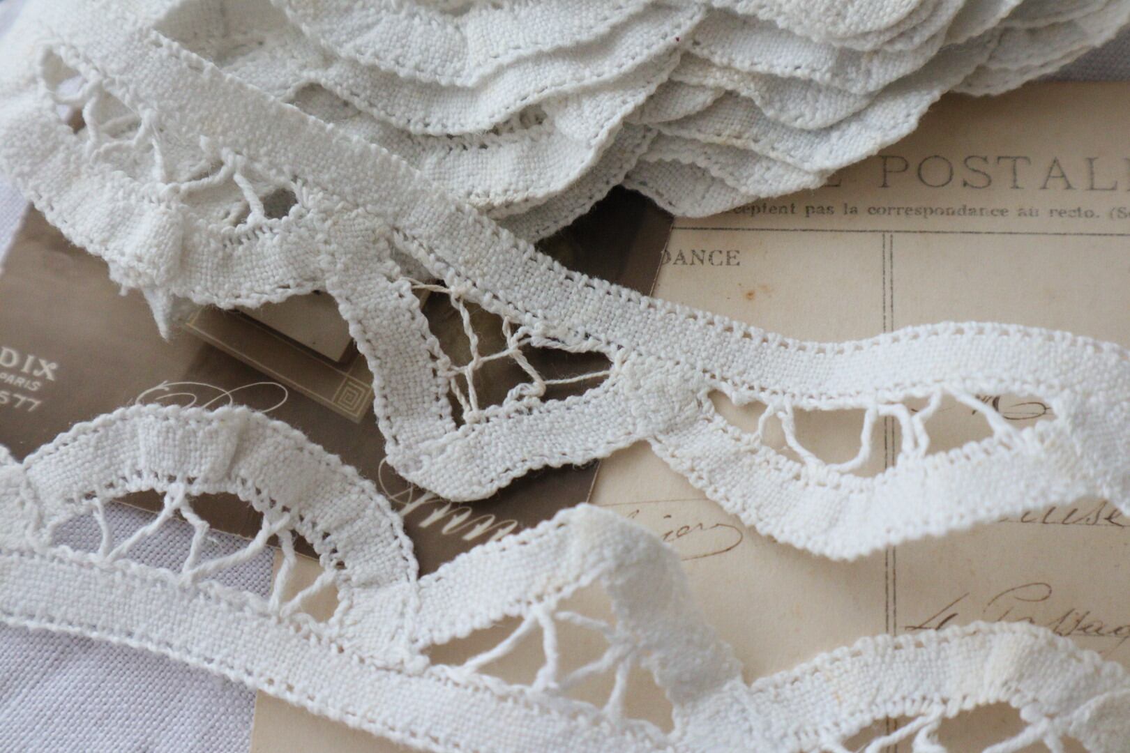 コットンレースとレース糸を組み合わせた手工レース